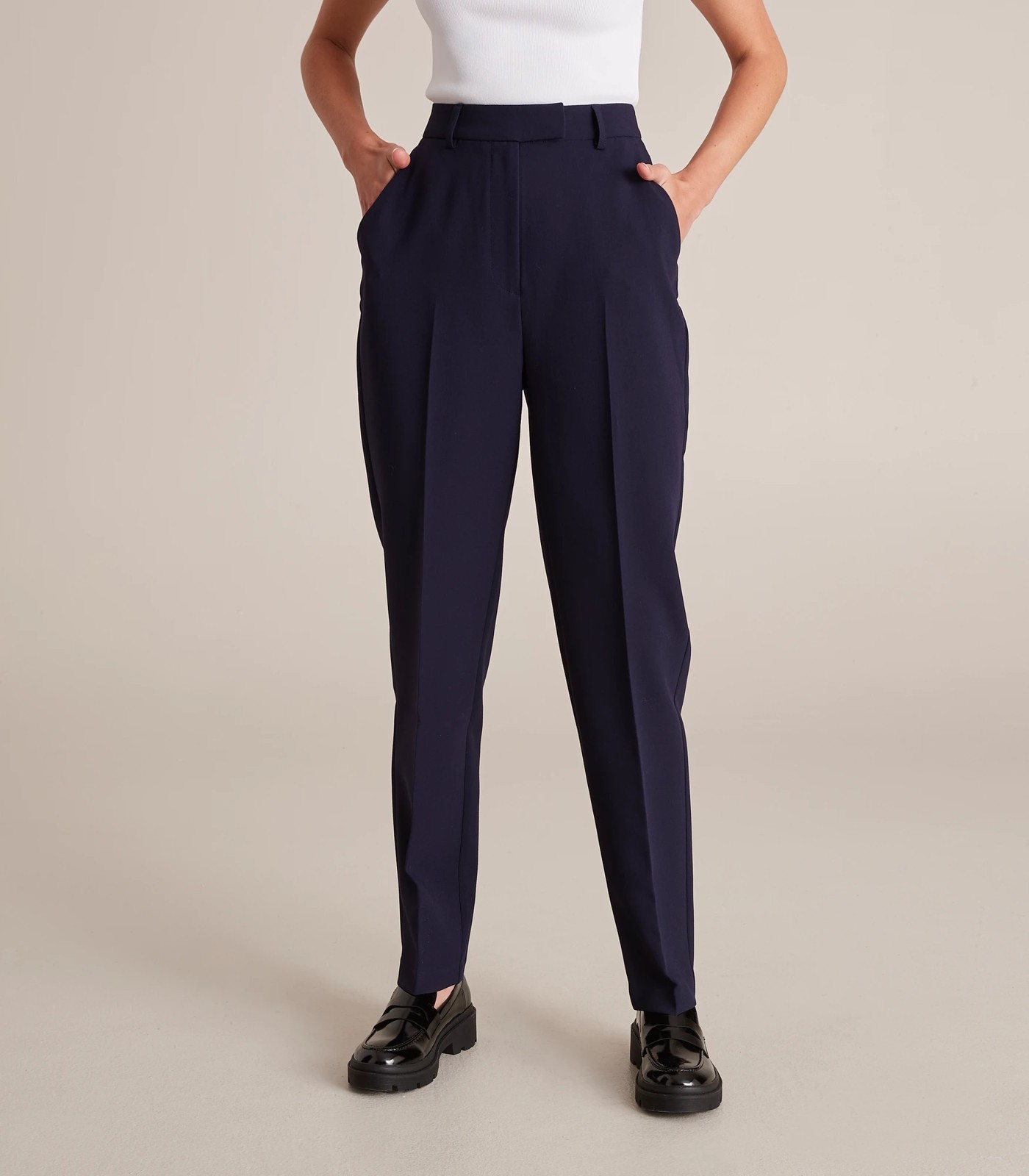 A great pair of pants for a day at the office or a formal affair, the Preview high waisted tapered pants offer comfort and ease of wear but remain classy and professional. They feature a structured waistband, high waisted design, front pockets and a tapered leg.
