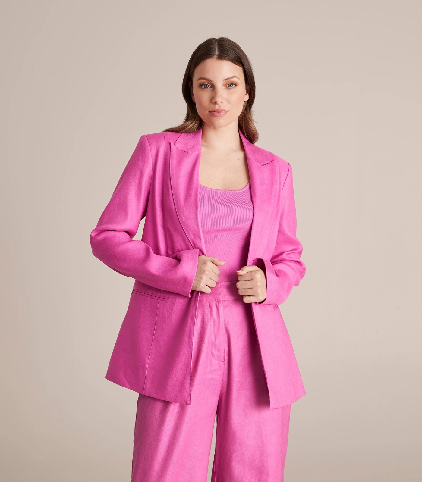 Flatter your shape and feel great in this linen blended relaxed blazer from the Preview range! It has a relaxed fit for comfort, a single breasted design and long sleeves. Pair with the matching wide leg pants to complete your look (sold separately).