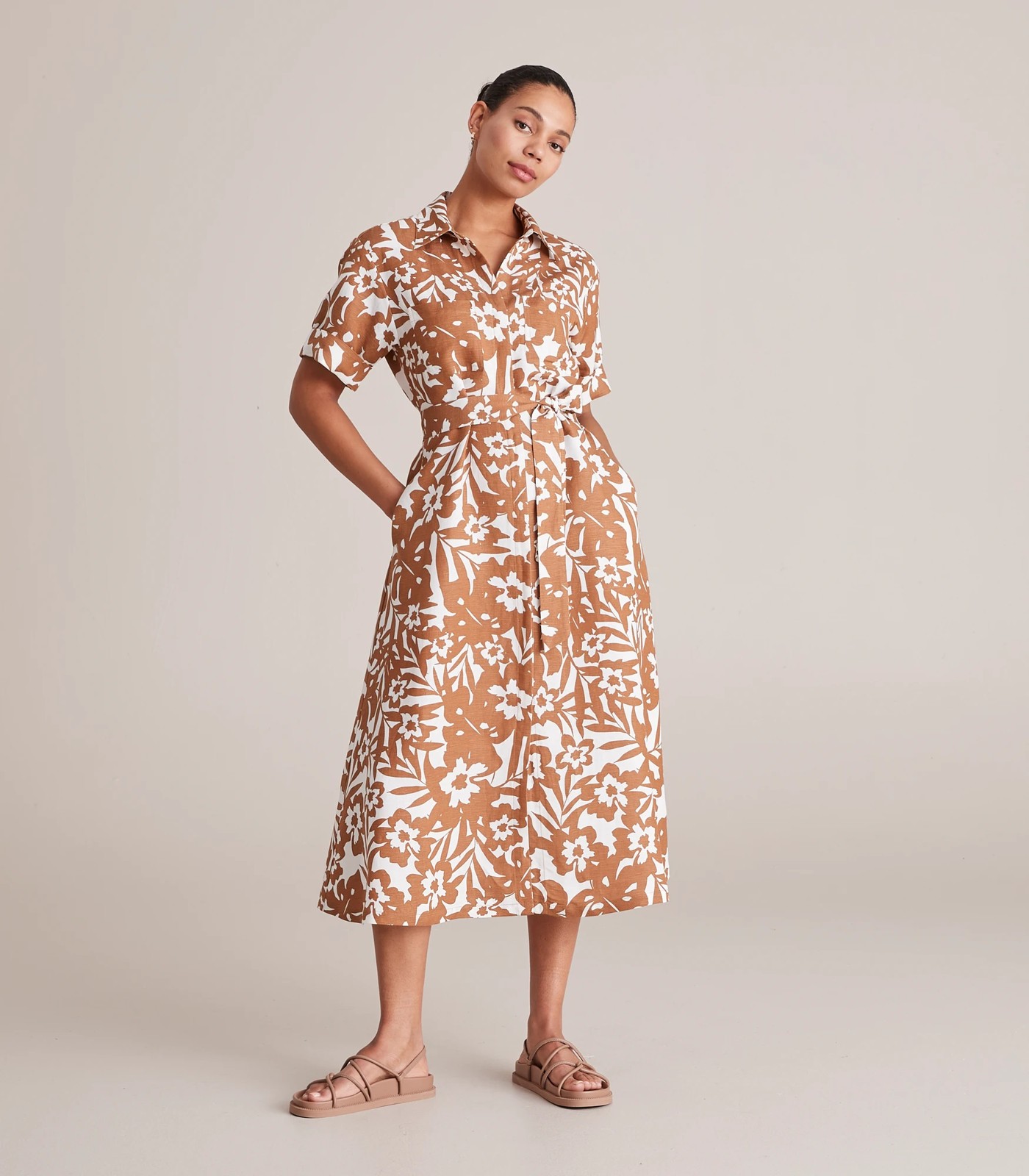 A great everyday dress for the summer season that will be worn over and over, the Preview shirt dress has a lightweight linen blended fabric, has a button through front, short sleeves and a tie waist belt.