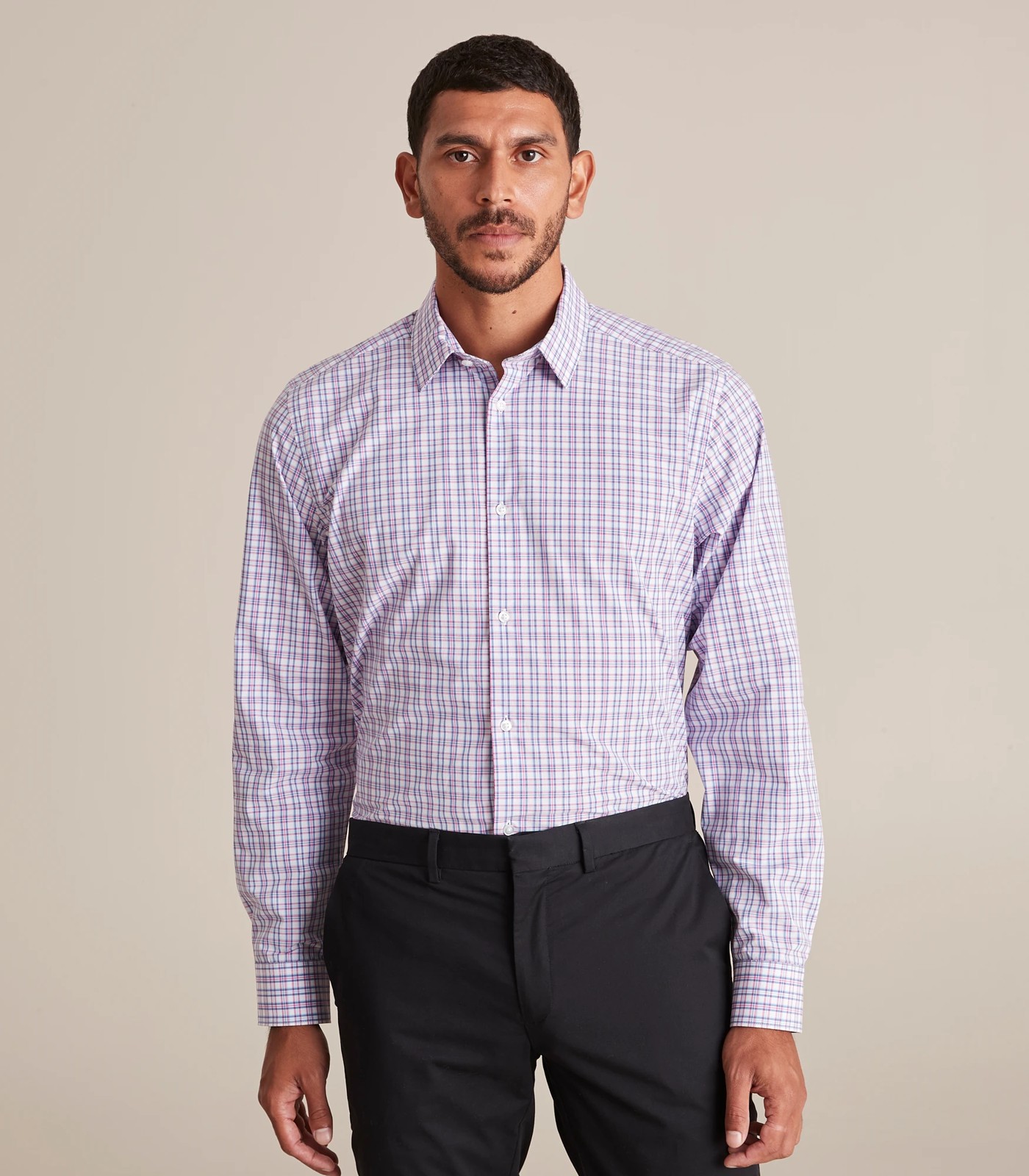 Offering a tailored fit, the Preview Long Sleeve Check Business Shirt is a stylish choice for the office and smart occasions after hours. This mens buttoned shirt features a blue and pink check print and is made from breathable cotton fabric that's soft to touch and comfortable to wear.