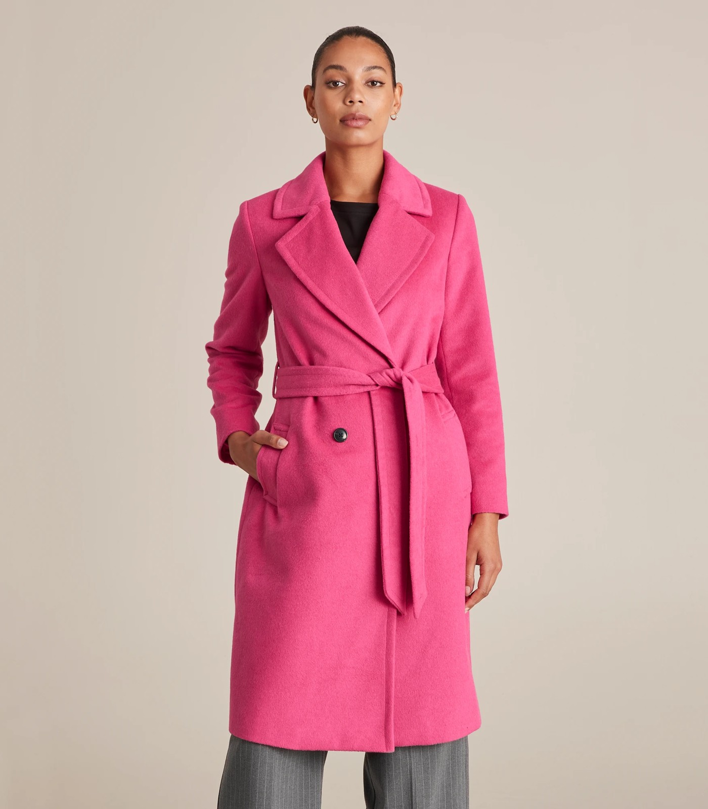 Perfect for the colder seasons, the Preview longline wrap coat will be one that will be worn for seasons to come. It features a warm woolen blend material, a removable tie waist belt and a double breasted design.