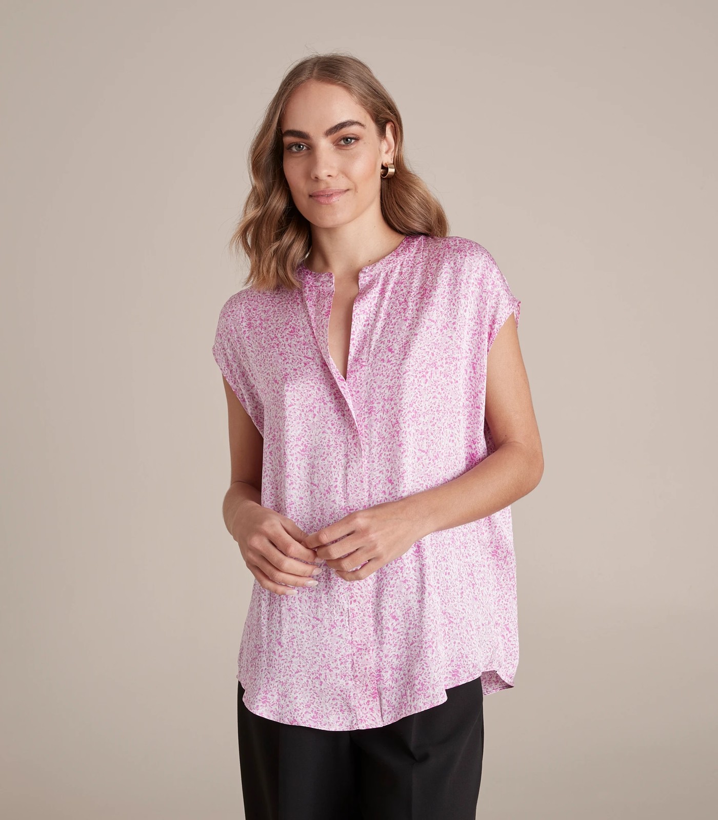 A great everyday design that can easily be dressed up or down, the Preview mock placket blouse features a round neckline with centre button closure and hidden keyhole, a sleeveless design and curved hemline for a flattering fit.