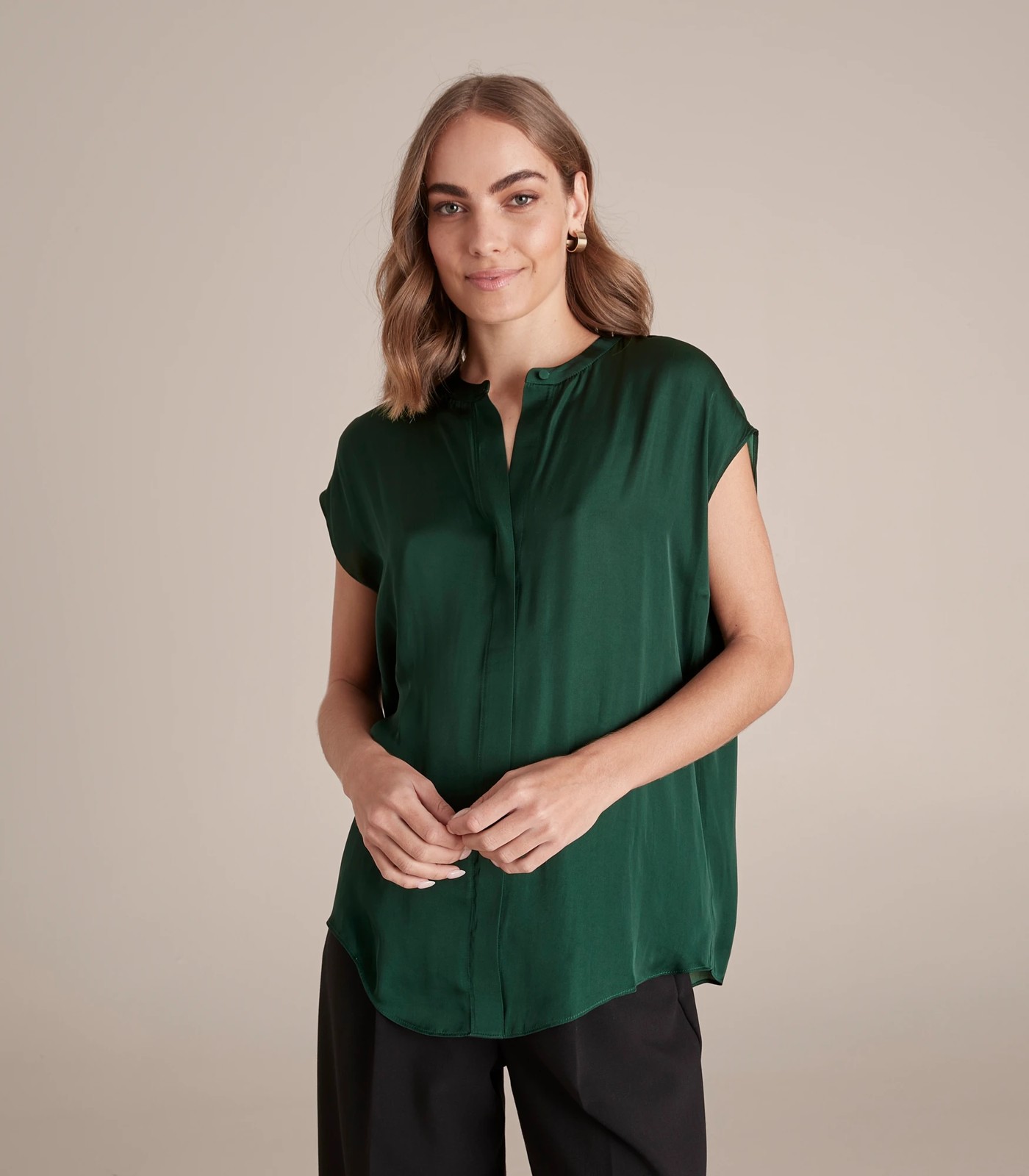 A great everyday design that can easily be dressed up or down, the Preview mock placket blouse features a round neckline with centre button closure and hidden keyhole, a sleeveless design and curved hemline for a flattering fit.