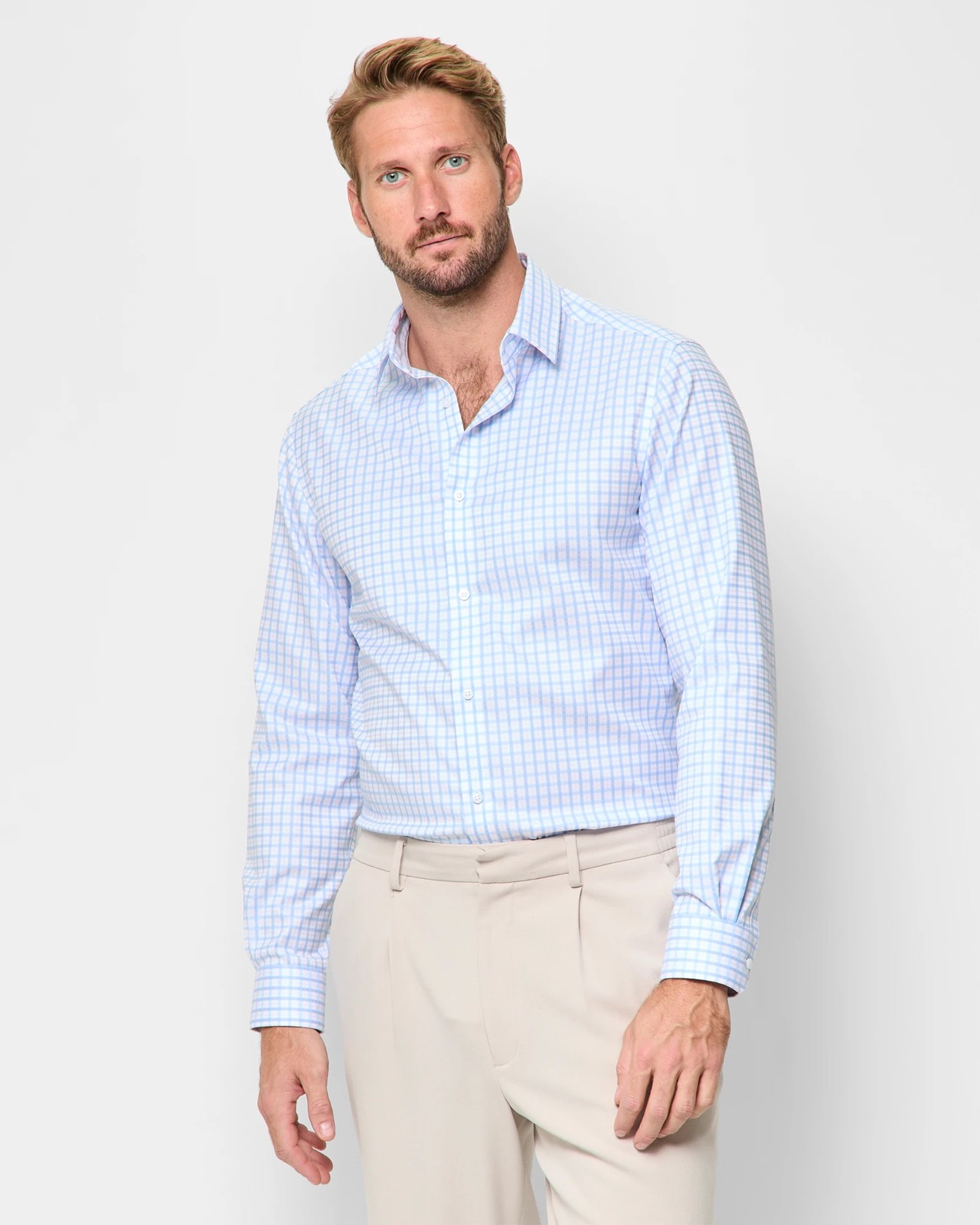 Preview Non Iron Long Sleeve Business Shirt - Blue Check