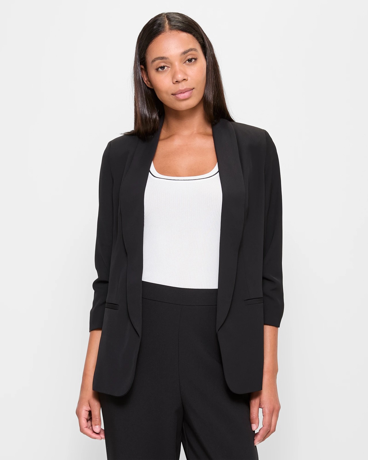 Discover the charm of our Ruched Sleeve Blazer, designed from lightweight polyester for an effortless wear. This fitted blazer boasts a round collared neckline with stylish front lapels and an open front. The long ruched sleeves add an interesting texture, while front pockets offer practicality. Its straight hemline completes the sophisticated look, making it a perfect choice for both casual and formal occasions. Add this stunning piece to your wardrobe and make every outfit special.