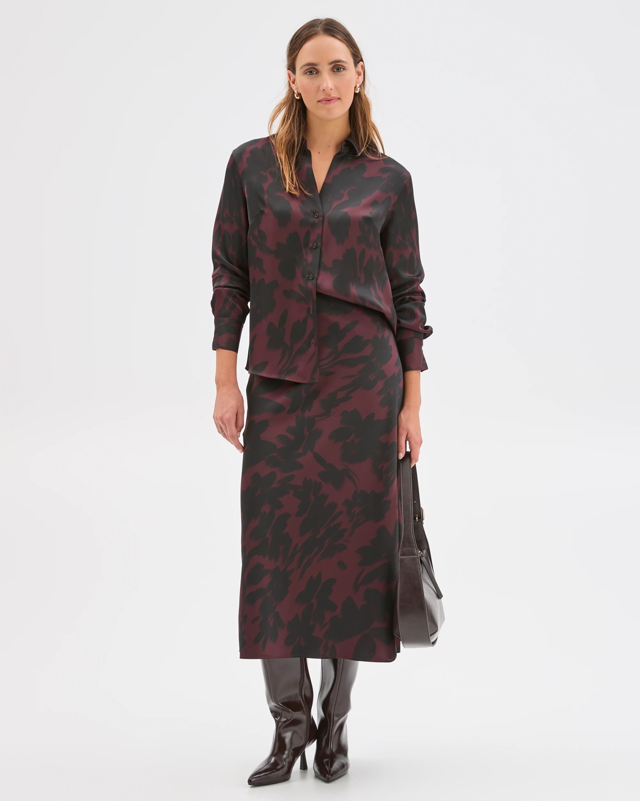 Preview Satin Long Sleeve Button Up Shirt - Floral Blur