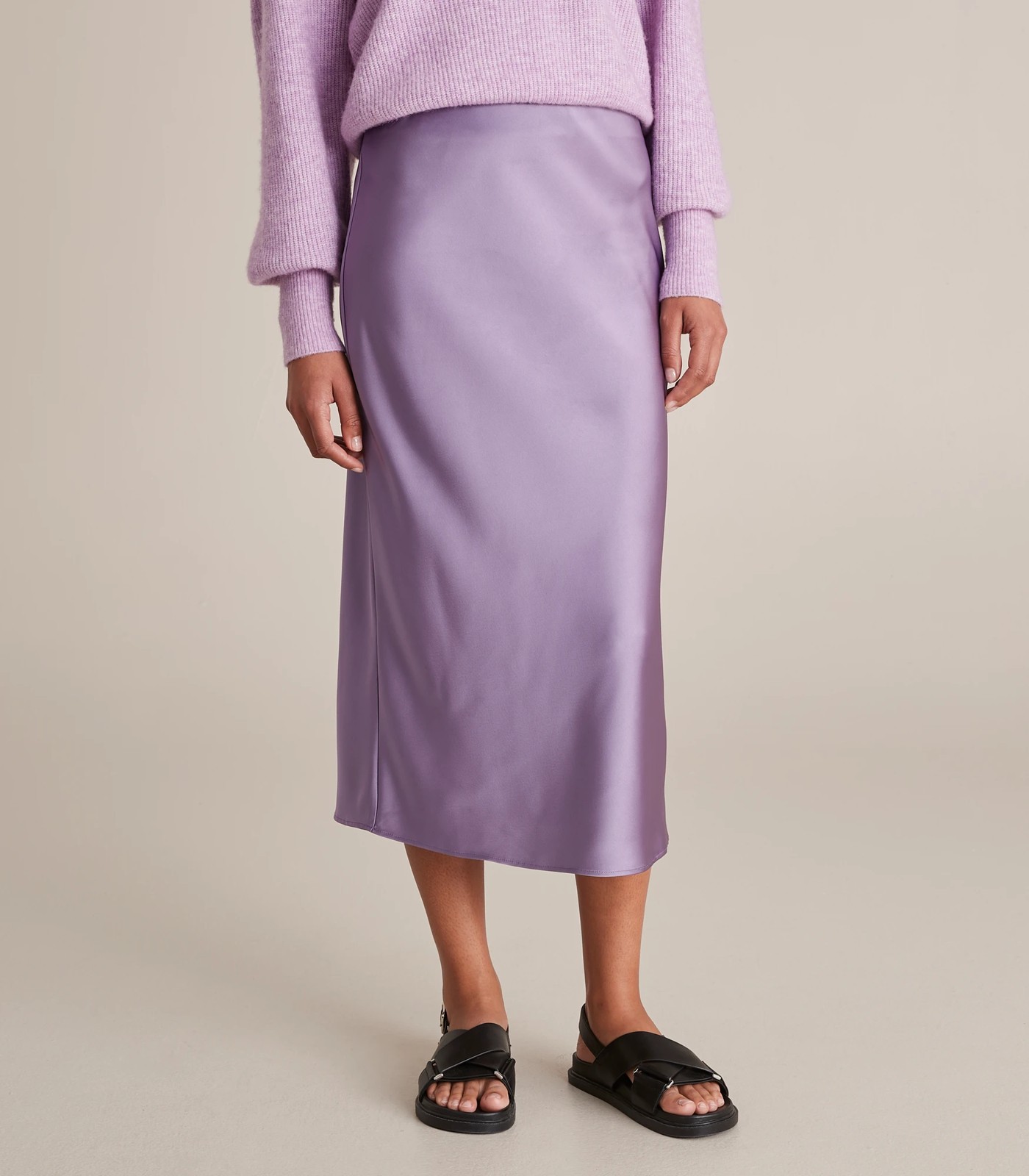 Flowing and fashionable, the Preview satin slip skirt features a hidden elastic waist for an easy pull on, a soft satin material and a midi length.
