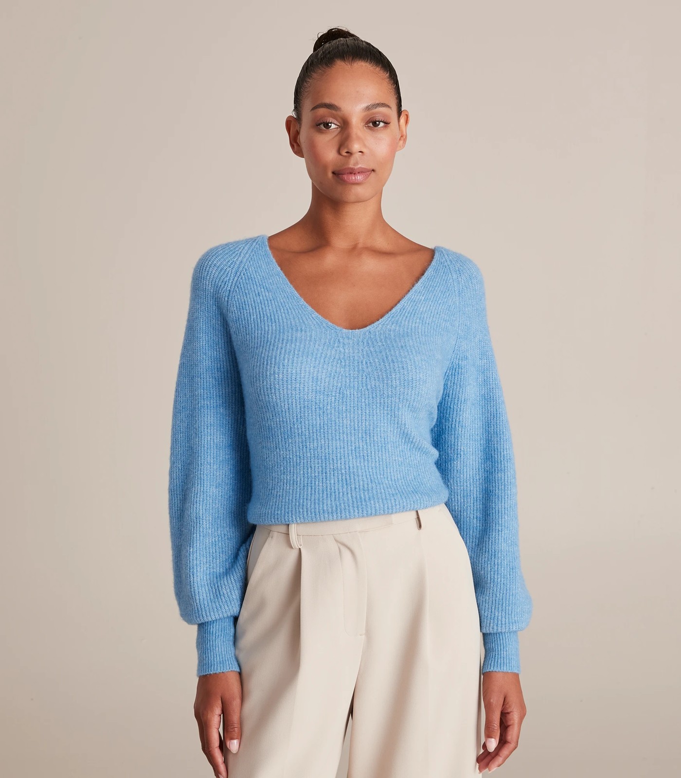 Soft to the touch with a v-neckline and knit fabrication, as well as being comfortable on the skin, the Preview puff sleeve v-neck sweater will be one you want in every fashionable colour (sold separately).
