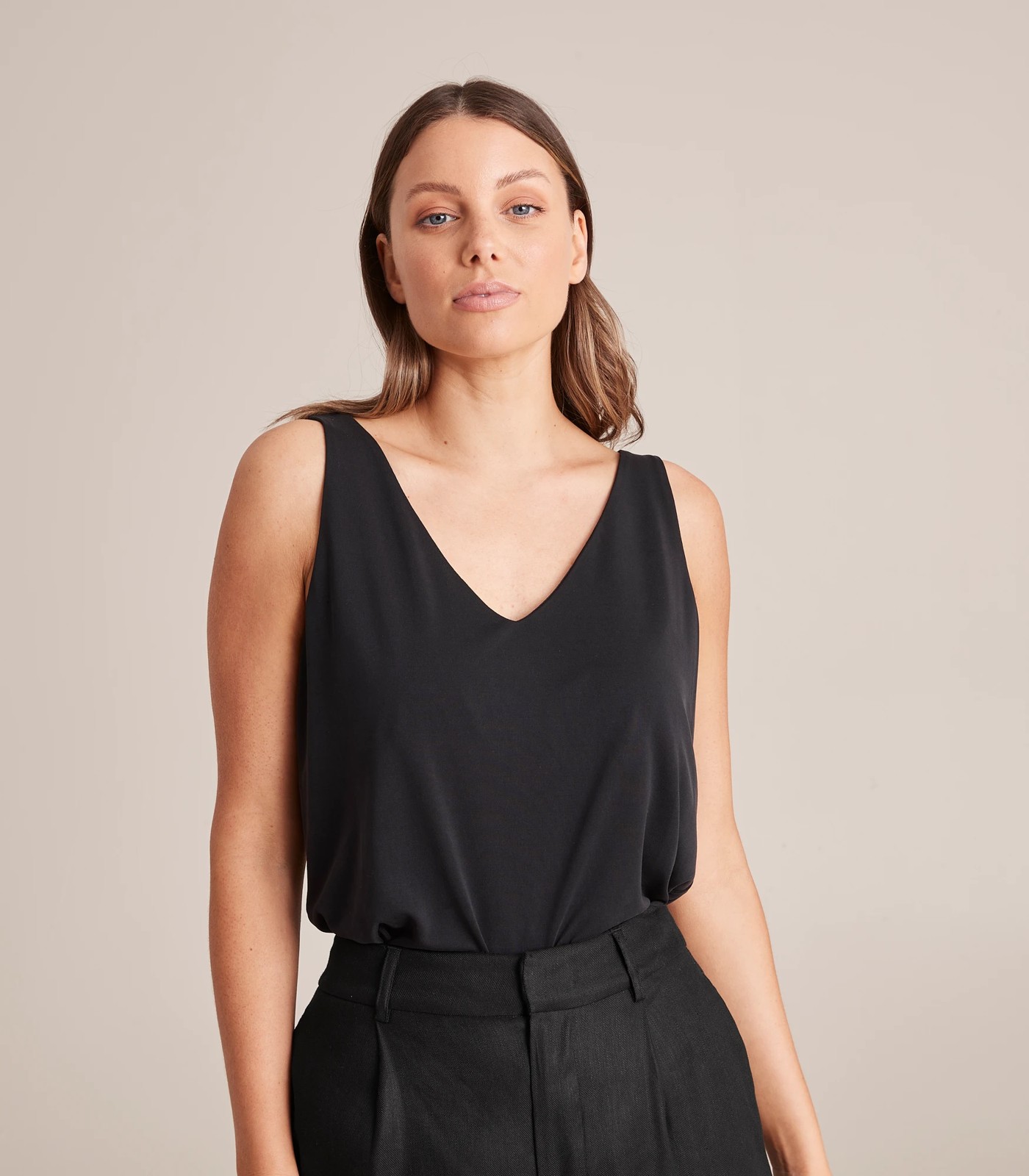A great lightweight design for wearing through the warmer months, the Preview lv-neck tank top has a v-neckline, sleeveless design and a straight hemline.