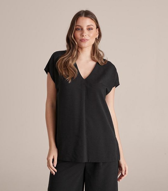 A cute top for everyday wear with your favourite bottoms, the Preview v-neck textured blouse has short sleeves, a v-neckline, an all over textured design and side seam splits for ease of movement.
