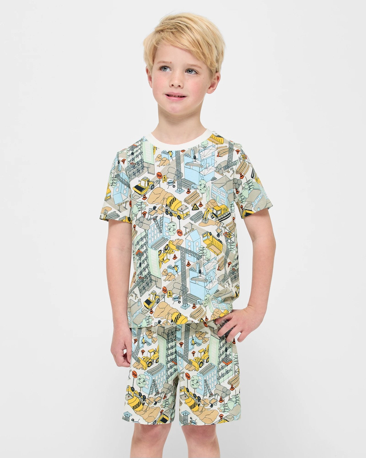 Get your little one ready for dreamland with this delightful cotton pyjama set. The friendly all over print will capture their imagination, while the comfortable ribbed crew neck and short sleeves ensure they stay cool and comfy all night long. This 2-piece set includes shorts with an elastic waistband for easy dressing. Perfect for bedtime stories and snuggles, this pyjama set promises to make nighttime a cosy adventure. Add to your basket now and bring a smile to their face.