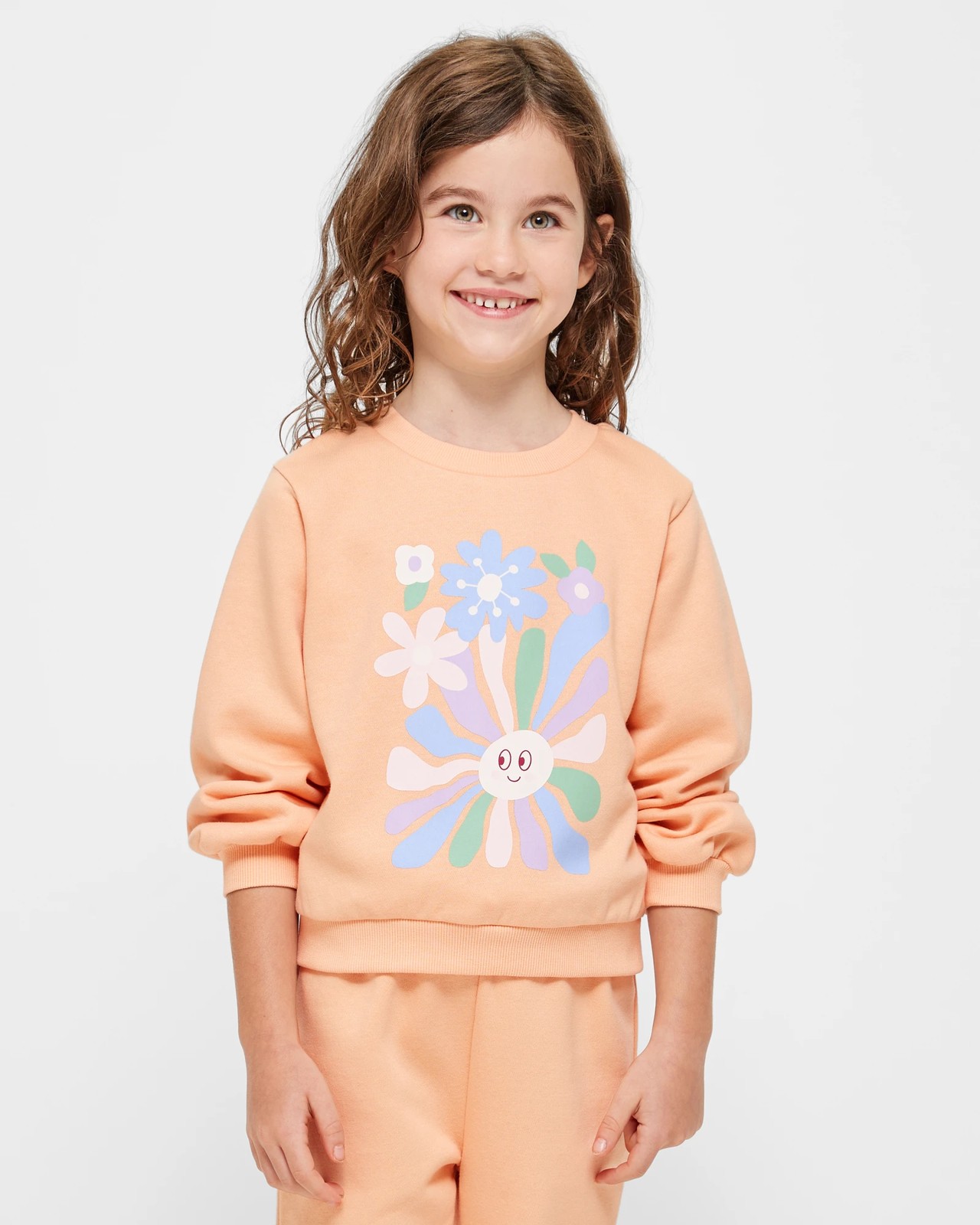 Experience ultimate comfort and style with our Print Crew Neck Jumper for girls. Made with a cotton-rich blend, this jumper features a regular fit that provides a cosy feel. The ribbed crew neck and long sleeves with ribbed cuffs ensure a perfect fit. The large print on the front adds a pop of colour and a playful touch to the design. Perfect for chilly days, the straight ribbed hem and fleece lining keep your little one warm and snug. Don't miss out on this wardrobe must-have! Order your Print Crew Neck Jumper now and embrace the joy of fashion and comfort.