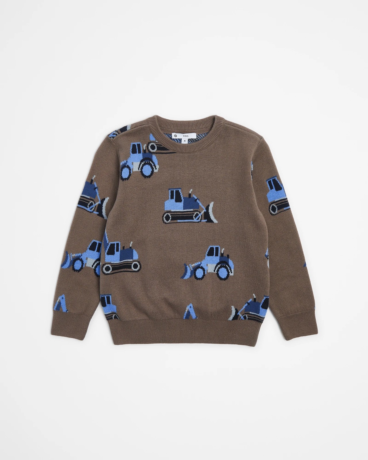 Discover the Print Intarsia Knit Jumper, a stylish and versatile addition to any young boy's wardrobe. Made from soft and comfortable cotton knit, this jumper features a regular fit for easy movement. The all-over print adds a trendy touch, while the crew neck and long sleeves provide warmth during cooler seasons. With a straight hem for a polished look, this jumper is perfect for casual outings or special occasions. Upgrade your little one's style with this fashionable and cosy knit jumper today!