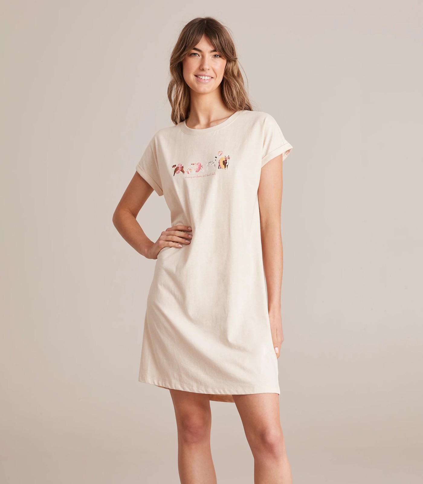 For a lightweight night's sleep with ease of movement, the sleep t-shirt nightie features a crew neckline, short roll cuff sleeves, a breathable cotton rich fabrication and a midi length.