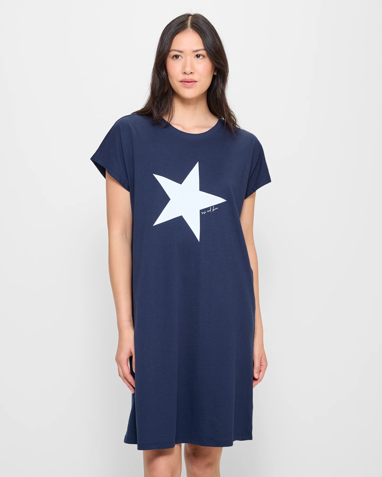 Take your comfort level to the next level with our Print Sleep T-Shirt Nightie. Crafted from cotton fabrication for breathability, this regular fit nightie features a striking color, an all over themed print and a crew neckline. The short sleeves and straight hemline provide a flattering silhouette, while the midi length ensures all day comfort. Perfect for cozy nights in!