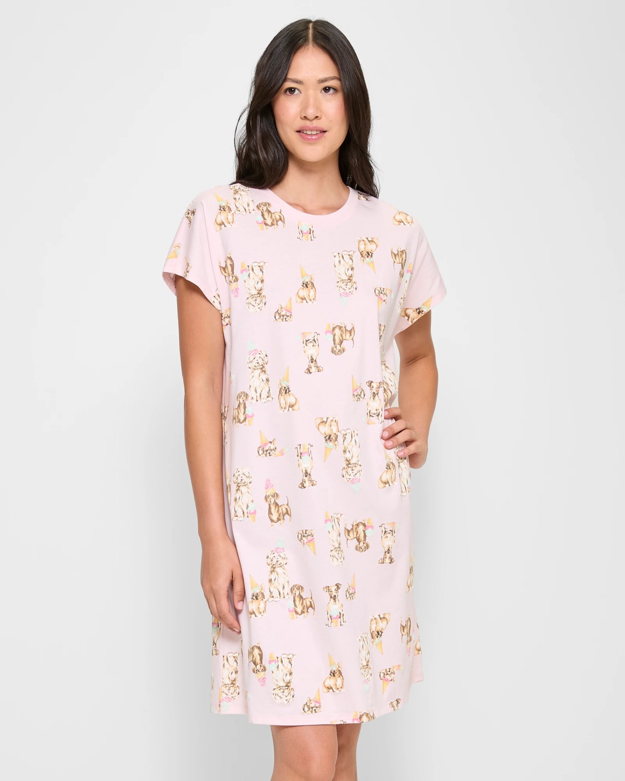 Take your comfort level to the next level with our Print Sleep T-Shirt Nightie. Crafted from cotton fabrication for breathability, this regular fit nightie features a striking color, an all over themed print and a crew neckline. The short sleeves and straight hemline provide a flattering silhouette, while the midi length ensures all day comfort. Perfect for cozy nights in!