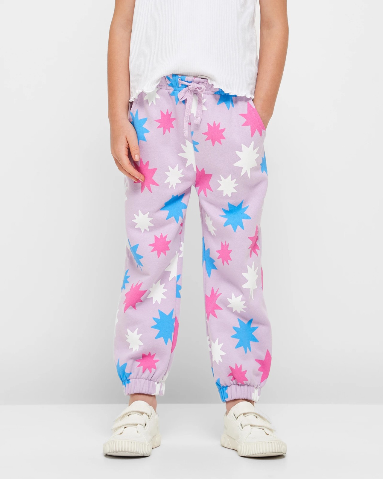 Introducing the Print Trackpants, a perfect addition to any girl's wardrobe. Made with a soft, cotton-rich fabric, these trackpants offer a comfortable and regular fit. With a stylish all-over print, they add a touch of charm to every outfit. The elastic waist with a drawcord ensures a secure and adjustable fit, while the side pockets provide convenient storage. The elastic cuffs not only add a trendy look but also keep the trackpants in place. Designed with a fleece lining, they provide warmth and cosiness during colder days. And don't forget, there's a matching zip hoodie available to complete the look. Upgrade your little one's style with the Print Trackpants now!
