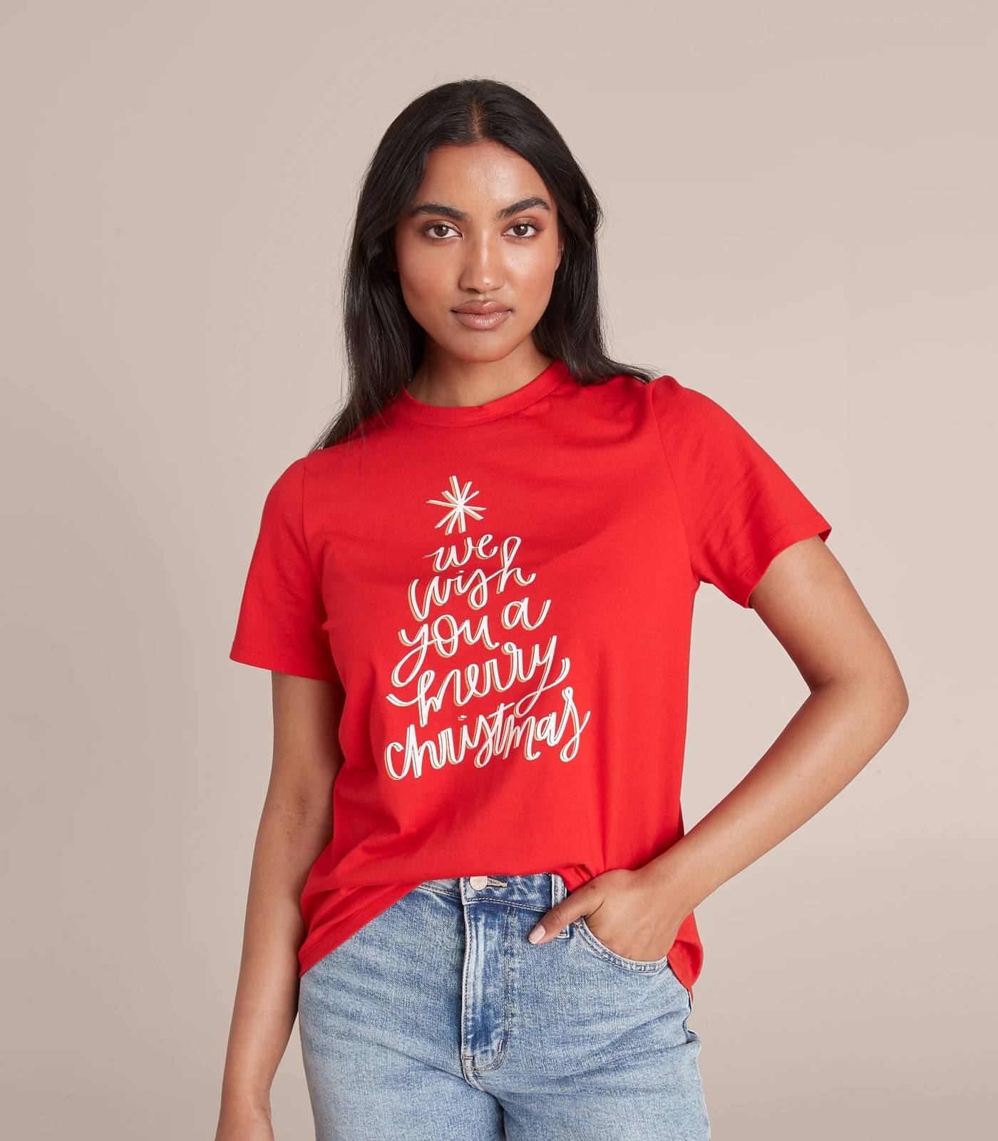 Bold chest print with wording WE WISH YOU A MERRY CHRISTMAS