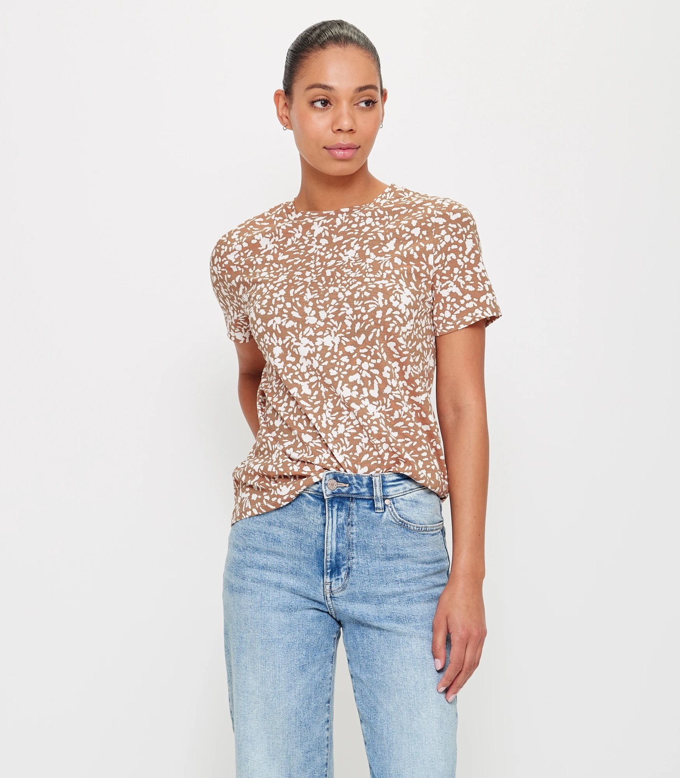 The printed fitted crew t-shirt is a great tee for everyday wear. It features a bold print, short sleeves and a lightweight soft cotton fabrication.