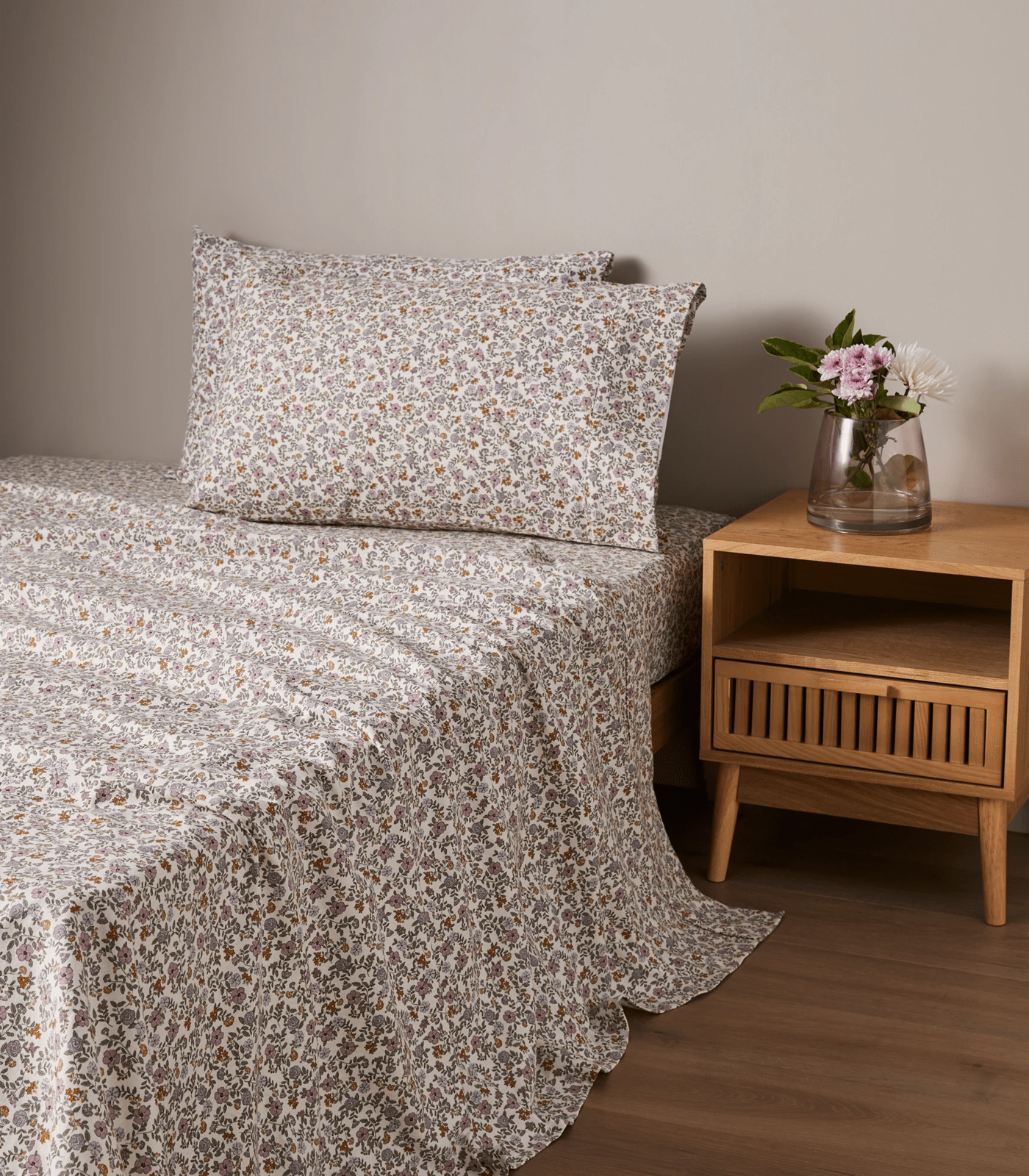Sleep comfortably on cold nights with the Printed Flannelette Sheet Set. This cotton flannelette set includes a fitted sheet, flat sheet and matching pillowcase/s with a floral print to pair with the rest of our bed linen range (sold separately). It is brushed for softness and available in single, king single, double, queen and king bed sizes.