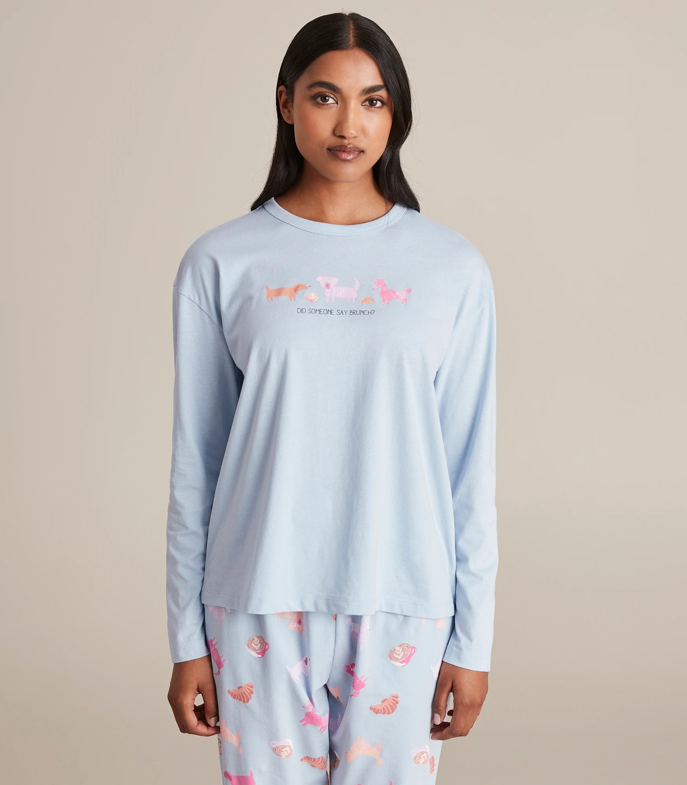 Great to pair with any of your favourite bottoms, the long sleeve printed sleep tee is the perfect must have for any wardrobe. It is made from a breathable cotton fabrication, has a bold chest slogan and has long sleeves.