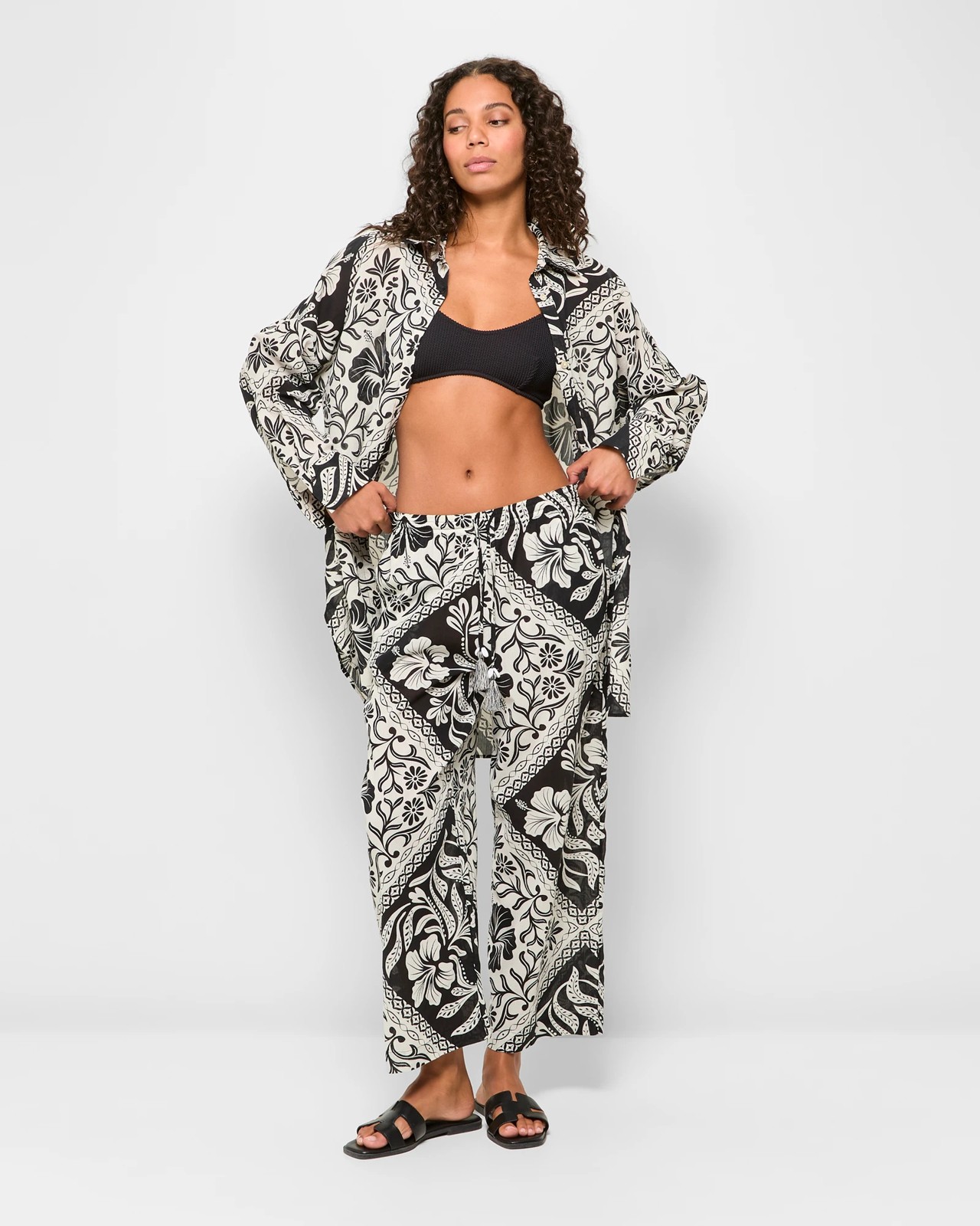 Slip into these Printed Resort Pants and enjoy both style and comfort no matter the occasion. Featuring a bold black and white tile print, these lightweight cotton trousers feel wonderfully soft and keep you feeling fresh all day long. The elastic waistband with adjustable drawstring offers a personalised fit, while the side pockets provide handy storage for small essentials. The wide leg and cropped length create a flattering, easygoing silhouette, perfect for strolls at the seaside or relaxing with friends. Make these vibrant trousers your new favourite for adding personality and comfort to your wardrobe.