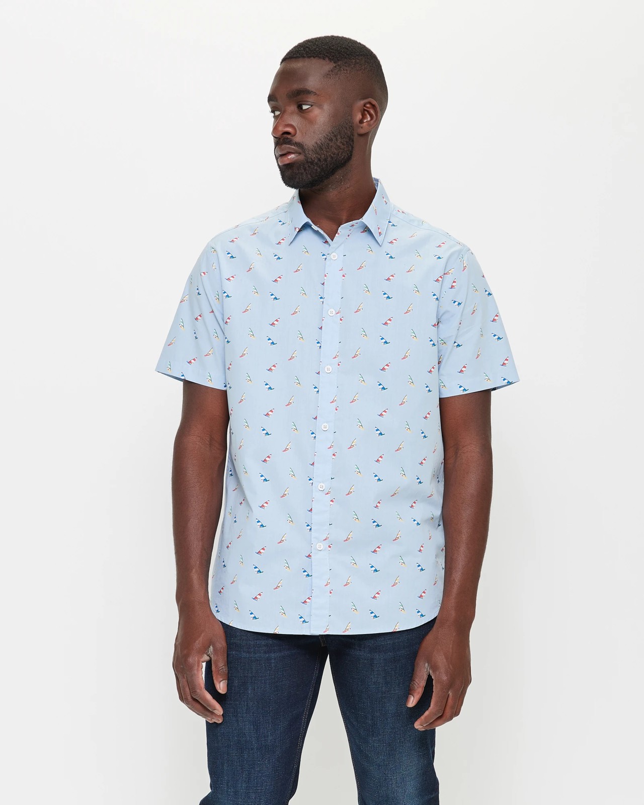 Make a lasting impression with our stylish and comfortable Windsurfer Print Shirt. Made from a breathable cotton fabrication, this men’s shirt has a regular fit and features a blue windsurfer print all over. It has a collared neckline, button through front, short sleeves and curved hemline for an extra touch of style. Finished with a centre back pleat for movement, this shirt is perfect for any occasion.