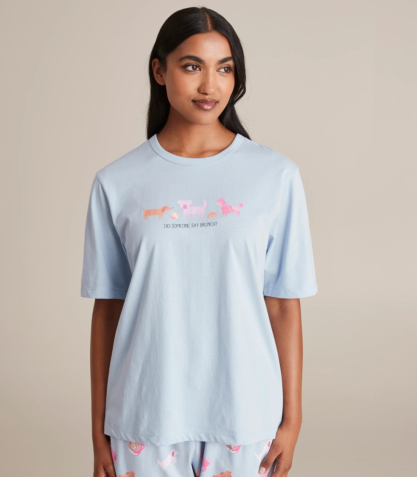 Bold print on chest with wording DID SOMEONE SAY BRUNCH?