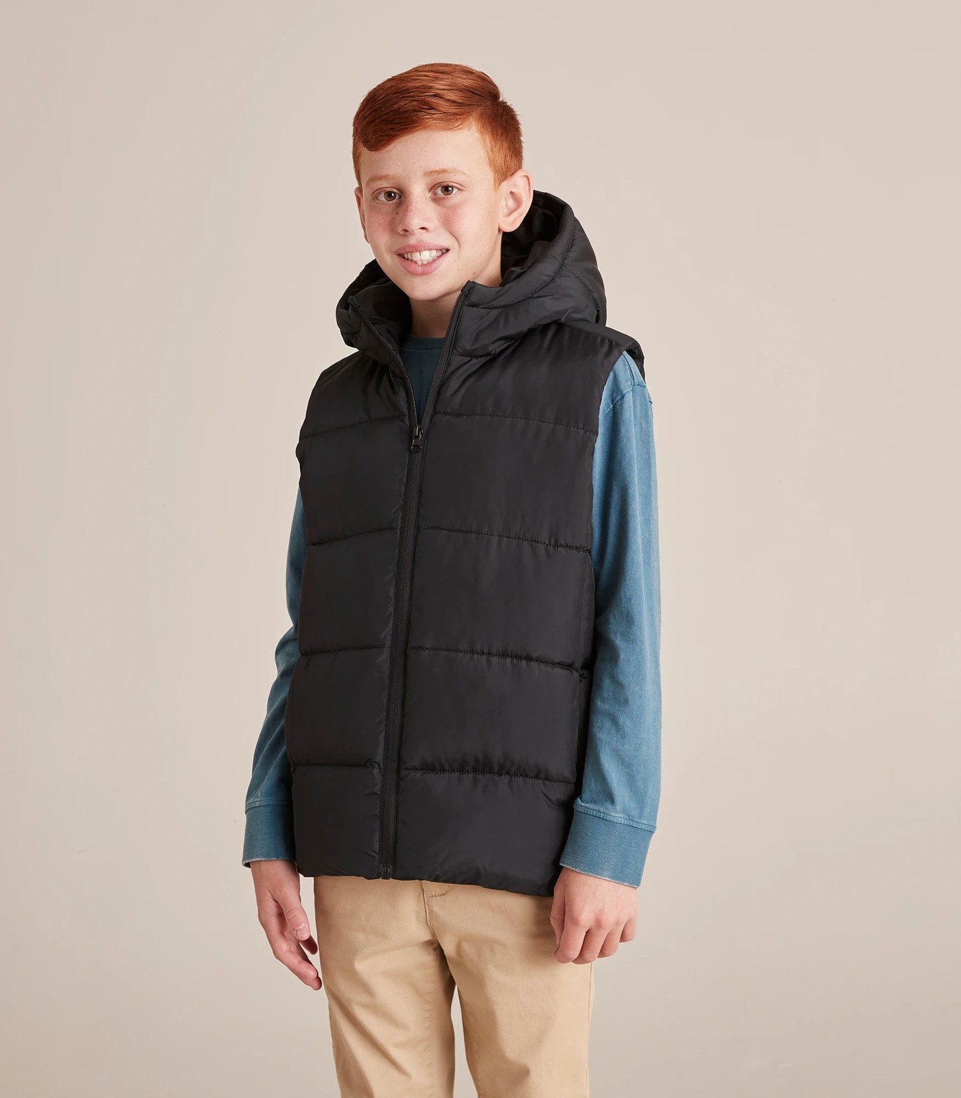 A great addition to his wardrobe this season comes the Puffer Vest, featuring a padded body that is shower resistant, hood and front seam pockets to keep him extra warm and dry.