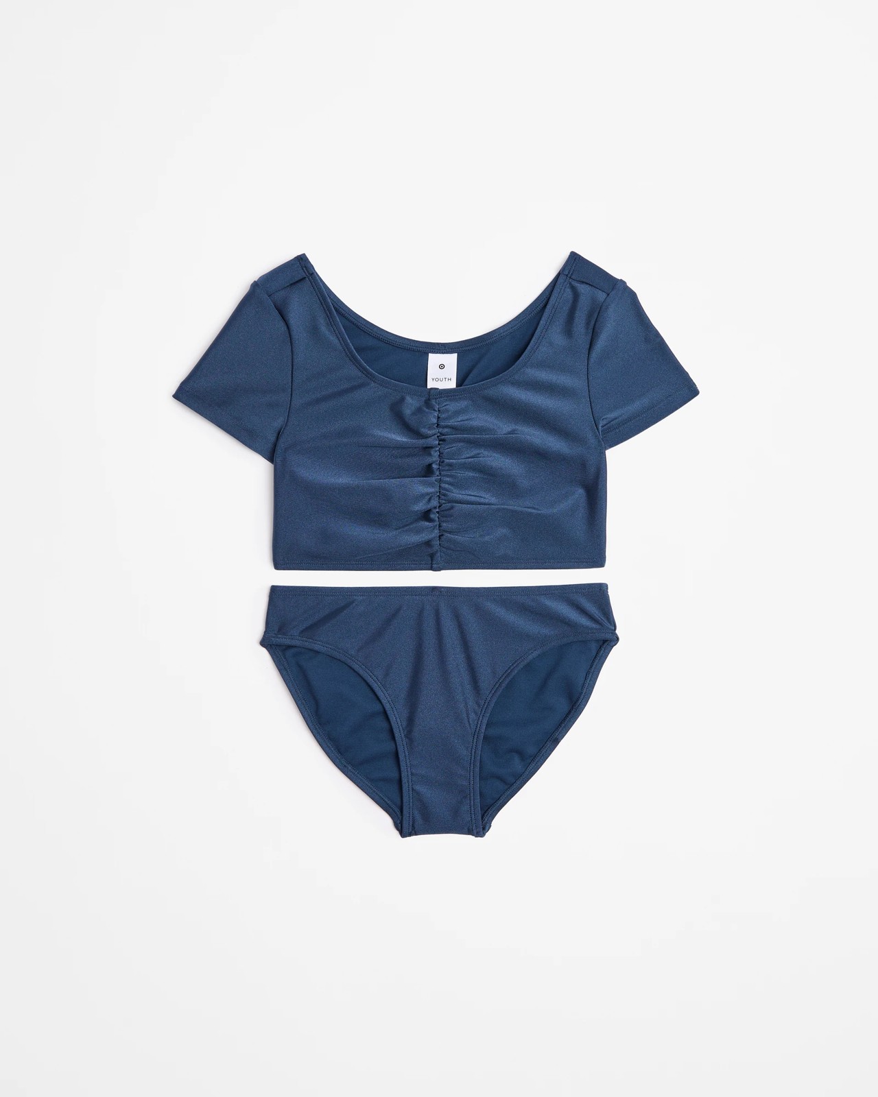Make a splash with our Pull Front Swim Bikini 2 Piece Set, perfect for those sunny beach days! Featuring a stylish scoop neck and comfortable short sleeves, this set offers the ideal blend of fashion and functionality. The plain brief bottoms and fully lined design ensure a perfect fit and added comfort. Dive into fun and enjoy the confidence that comes with a swimwear set designed just for you. Don't wait - add this must-have set to your summer wardrobe today!