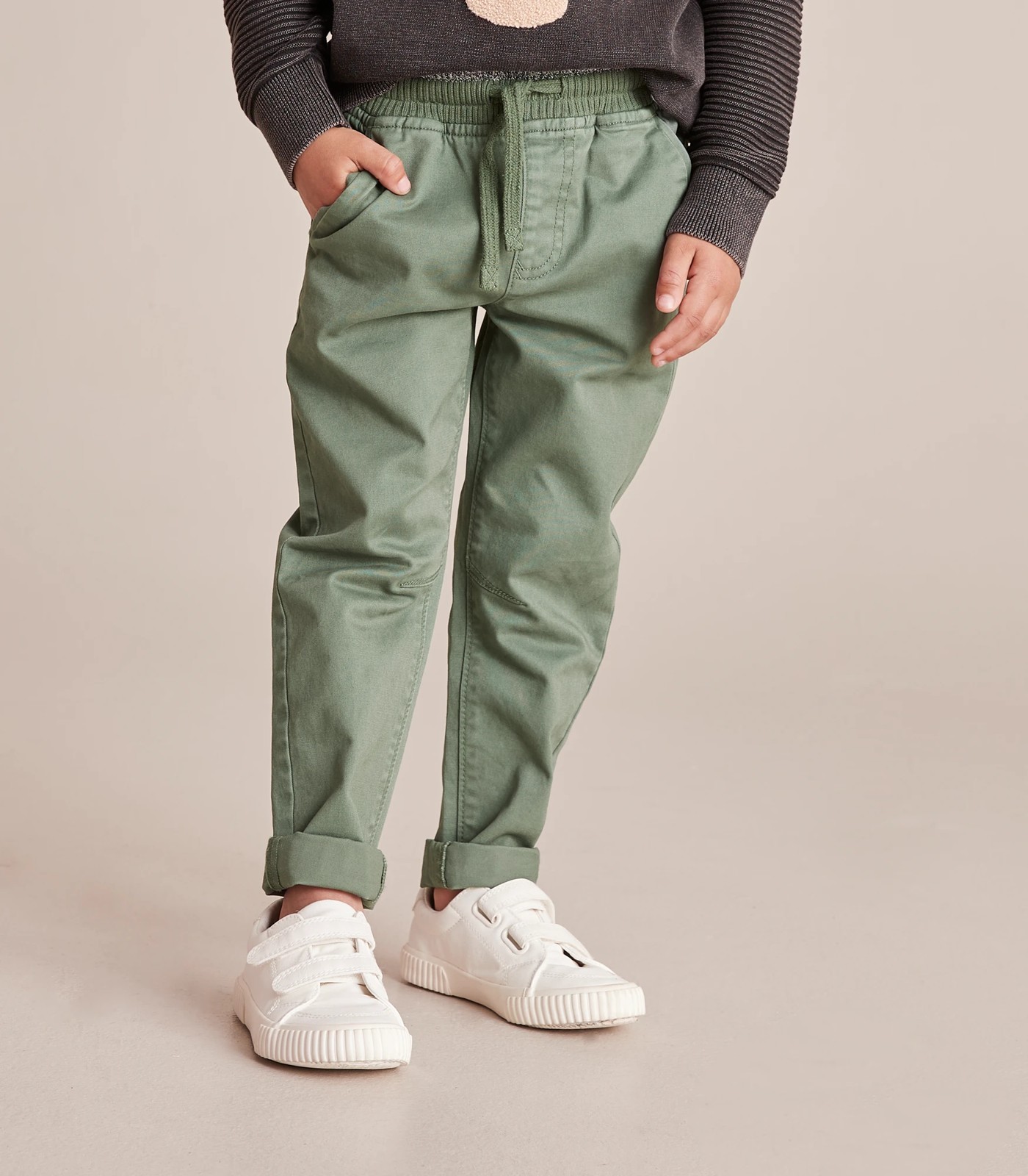 Our pull on chino pants are a great alternative to classic jeans. Offering both comfort and style with a ribbed elastic waistband and draw cord.
