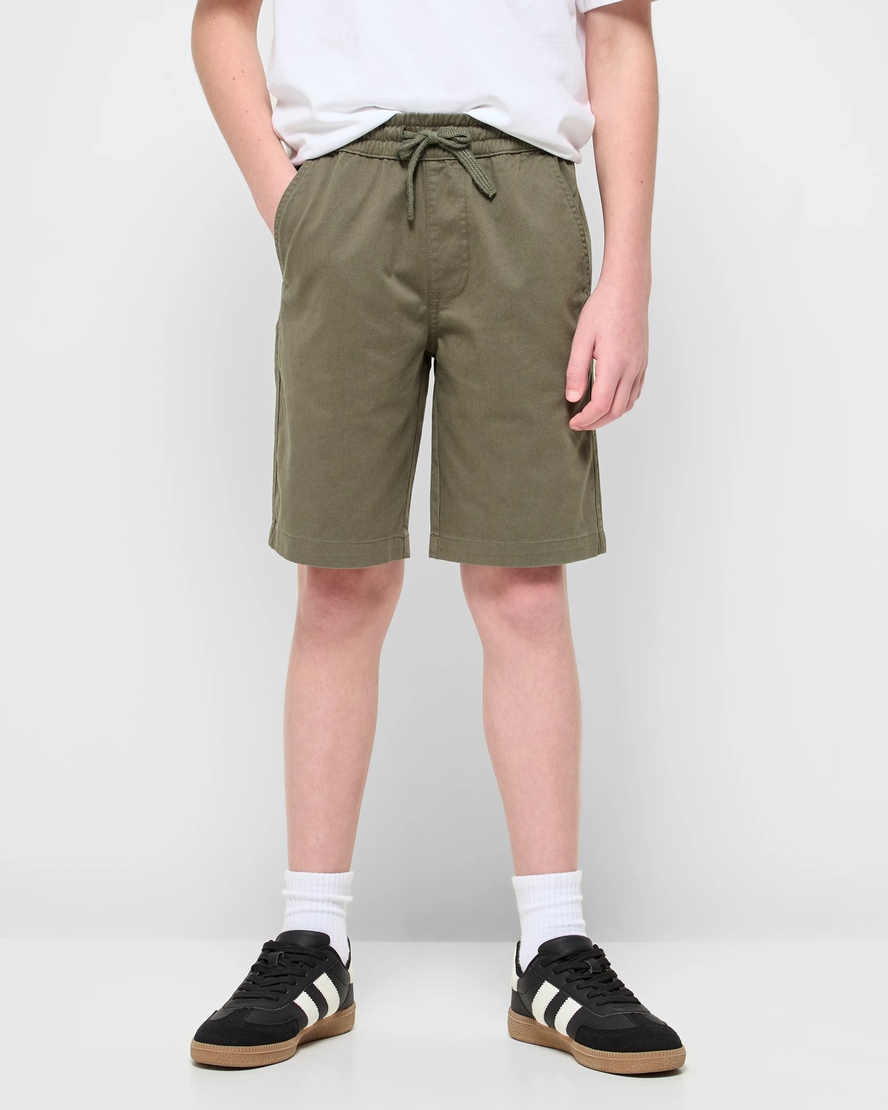 Designed with busy mornings in mind, these pull-on chino shorts make dressing simple and comfortable. The classic regular fit blends style with freedom of movement, thanks to a soft cotton fabric enhanced with just the right amount of stretch. An elasticated waistband with an adjustable drawcord ensures a snug, flexible fit, so active boys can run, climb and play all day with ease. Convenient side pockets let them carry their favourite little treasures, while a single back pocket adds a smart finishing touch. Give your child a pair of shorts that bring both comfort and effortless style to everyday adventures – add them to your basket today.