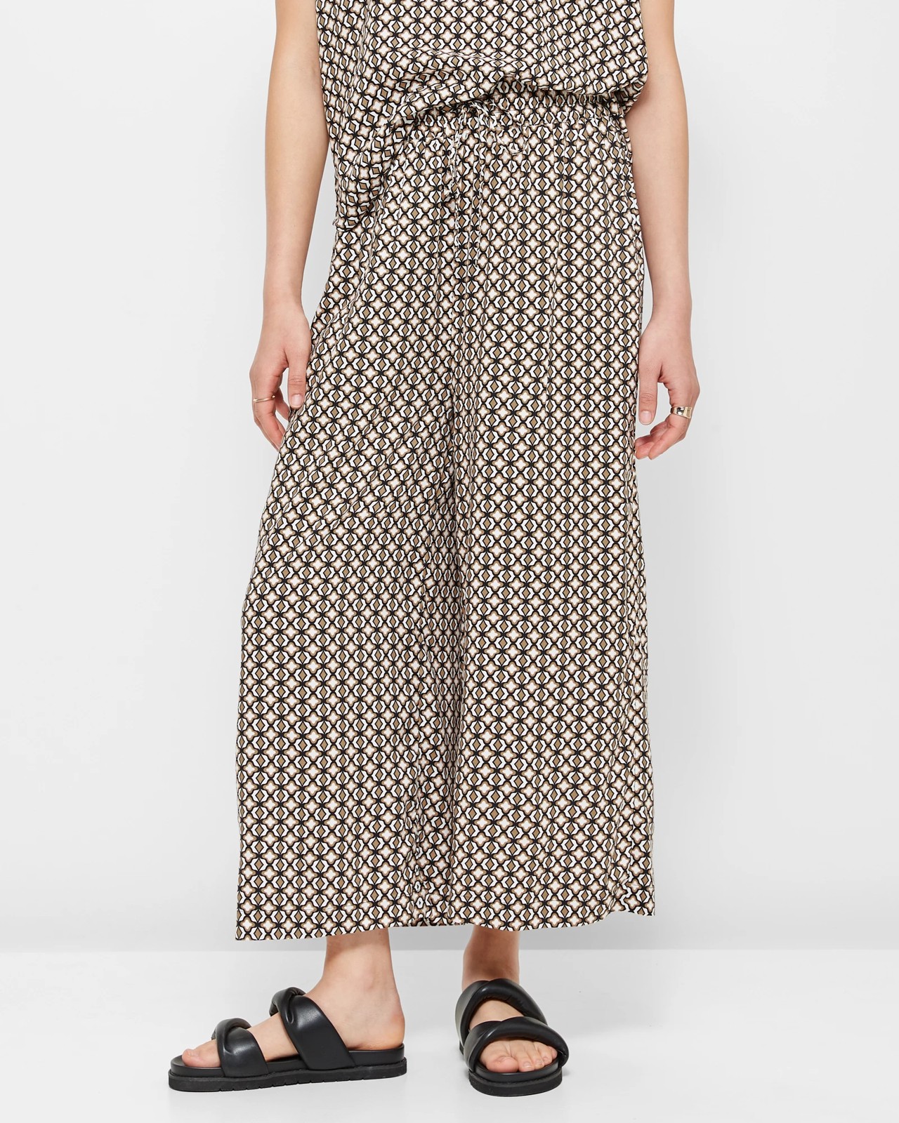 Step out in iconic style with our Pull On Culotte Pants. Crafted from a soft and lightweight viscose fabrication for added comfort, these pants feature a regular fit, with a classic retro geometric print all over. A thick elasticated waistband provides the perfect fit for all-day wear, whilst the wide leg culotte design ensures lasting style. Complete with side seam pockets and an ankle length finish, these pants will take you from day to night in effortless style.