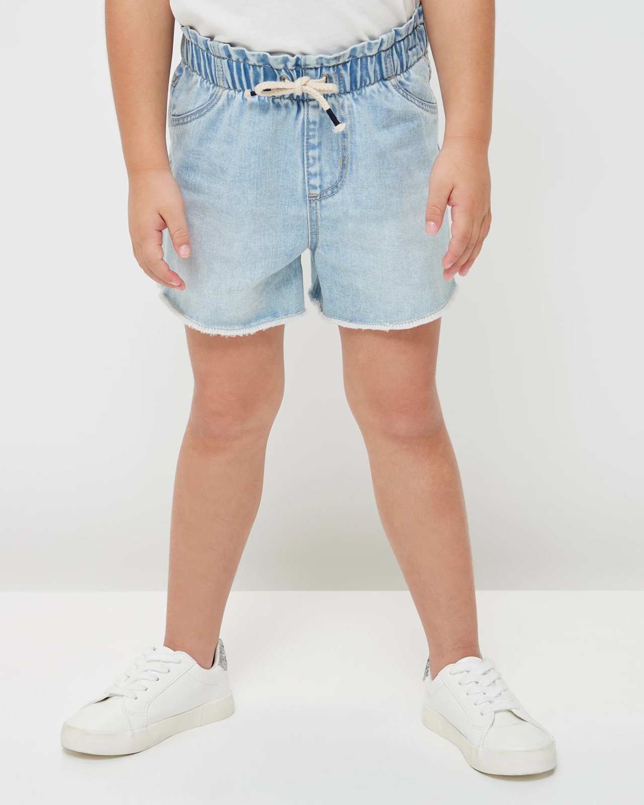 The Pull On Denim Shorts are perfect for summer fun! Crafted from a cotton-rich denim fabric, they come in a light wash blue and feature a gathered elastic waistband with rope drawcord, frayed hem, and back pockets. These mid-length shorts are sure to keep her comfortable all season long!