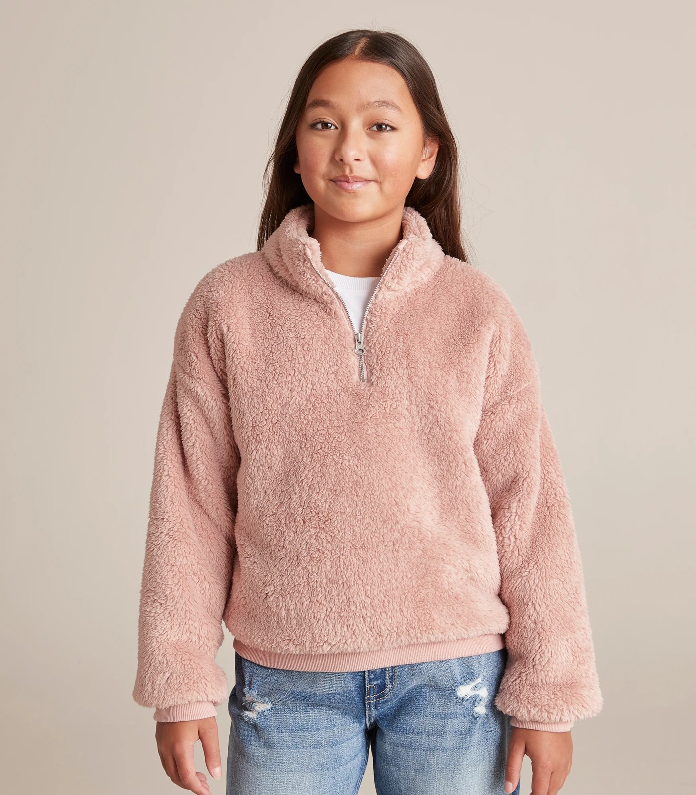 Crafted from a soft and cosy teddy fleece, with a qtr neck zip and ribbed cuffs and hem comes the pink Qtr Zip Teddy Fleece Jumper.