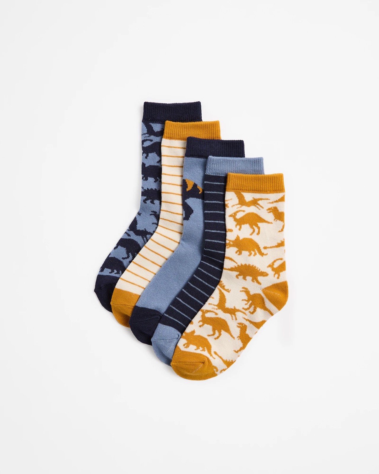 Step up your sock game with our Dinos Crew Socks, designed to keep boys comfortable and stylish. Made from a soft cotton-poly blend, these crew cut socks come in a pack of five, providing a variety of fun dinosaur patterns and vibrant colours that make dressing up exciting. Perfect for everyday wear, whether for school or playtime, these socks offer the best combination of fun and reliability. Don't miss out on adding these playful essentials to your child's wardrobe.