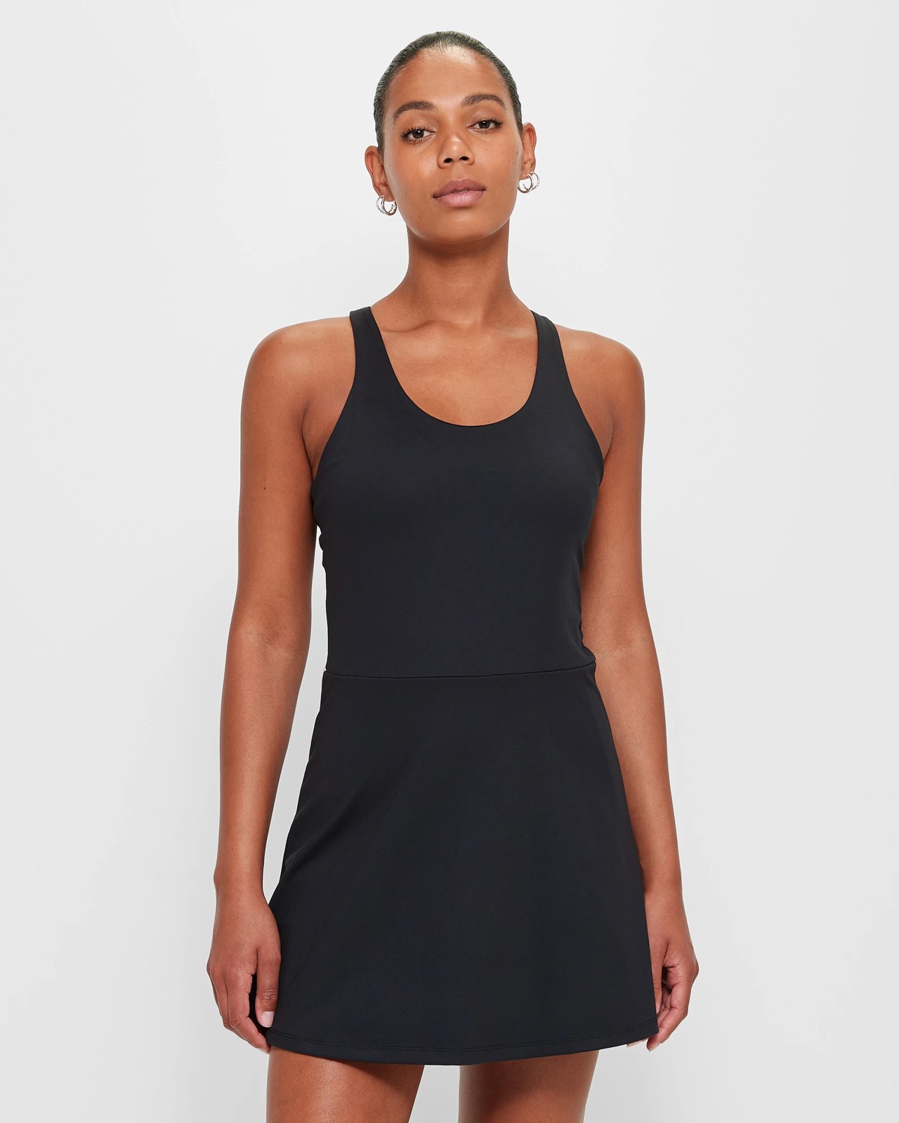 Take your tennis game to the next level with our Racer Back Tennis Dress. Made from a polyester rich fabrication, this dress offers stretch for ultimate comfort on the court. The dress contains recycled materials and is soft to the touch. With a regular fit, scoop neckline and sleeveless design, it provides a stylish and functional look. The thick shoulder straps offer extra support, while the inner shelf bra with padded cups provides added comfort. The structured waist and A-line skirt give the dress a flattering silhouette. The short length and curved hemline allow for easy movement, while the inner attached shorts from the waist provide extra coverage and convenience. Plus, there's a side pocket to hold balls. Get ready to ace your game with this stylish and practical tennis dress. Order now and serve up some style!