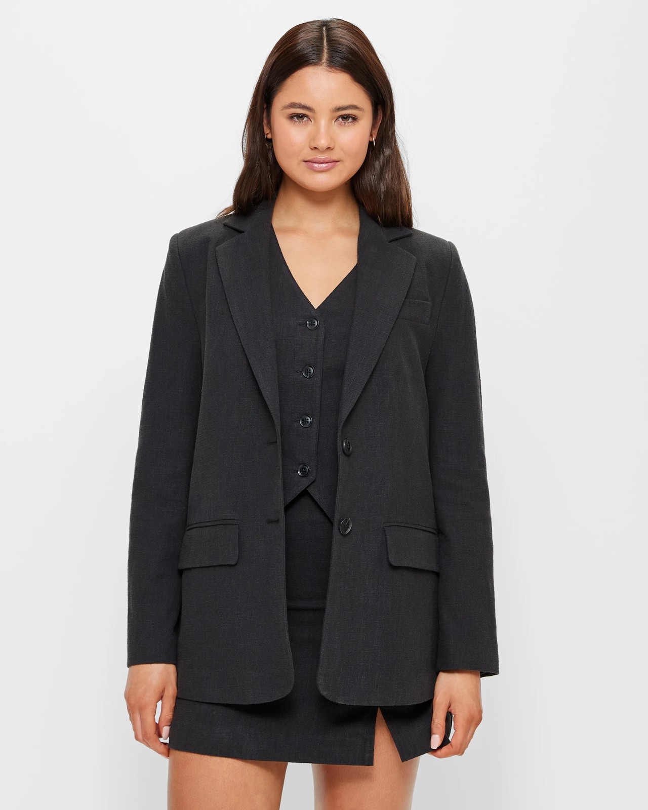The must have for anyone who feels a need to look sharp and stylish, the Lily Loves Ramie oversized blazer is what you need to step out in style. It features a relaxed oversized cut, a collared neckline with lapels, is single breasted with a button down front and is fully lined with front pockets. Pair with the matching pants to complete your look (sold separately).