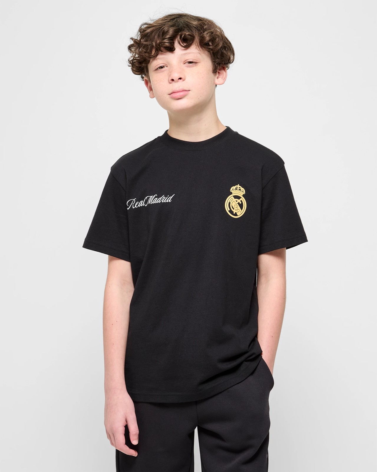 Let your youngster celebrate their favourite football team with this comfortable Real Madrid T-shirt. Made from soft cotton, this regular fit tee is ideal for days at home, on the pitch, or cheering from the stands. The ribbed crew neckline and short sleeves make it easy to wear, while distinctive Real Madrid graphics on the front and a bold back print show off their passion. Whether paired with everyday jeans or matching shorts, this top will quickly become a go-to in their wardrobe. Give them a chance to share in every victory with this standout T-shirt.