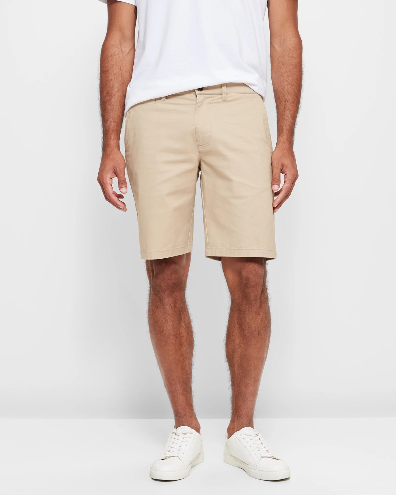 Regular Stretch Chino Shorts. Experience the perfect balance between style and comfort with our Regular Stretch Chino Shorts. Designed from cotton-rich fabric, these shorts offer just the right amount of stretch to keep you comfortable all day long. Their regular fit and structured waistband ensure a classic look, while the concealed zip fly front and button closure add a touch of sophistication. Whether you're out for a casual day or dressing up for an evening, these shorts have got you covered. Built-in front and back pockets provide practicality without compromising on style. Enhance your wardrobe today with these versatile chinos!