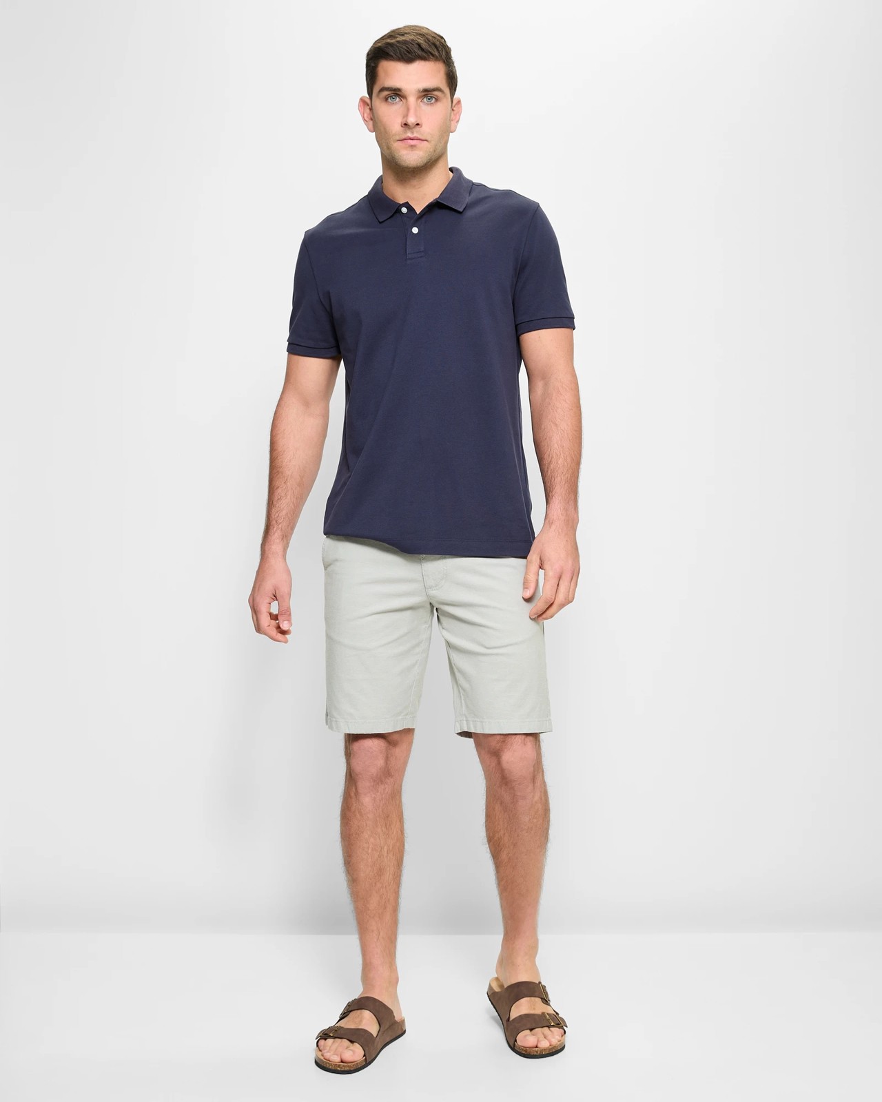 Experience unparalleled comfort with our Regular Stretch Chino Shorts. Made from high-quality cotton and a touch of stretch elastane, these shorts offer a perfect blend of style and flexibility. Designed with a structured waistband featuring belt loops and secured by a front button and zip fly closure, they ensure a snug fit every time. Convenient side and back pockets provide ample storage for your essentials. Ideal for any casual outing, these mid-length shorts are a must-have addition to your wardrobe. Get yours today and embrace effortless style and comfort!