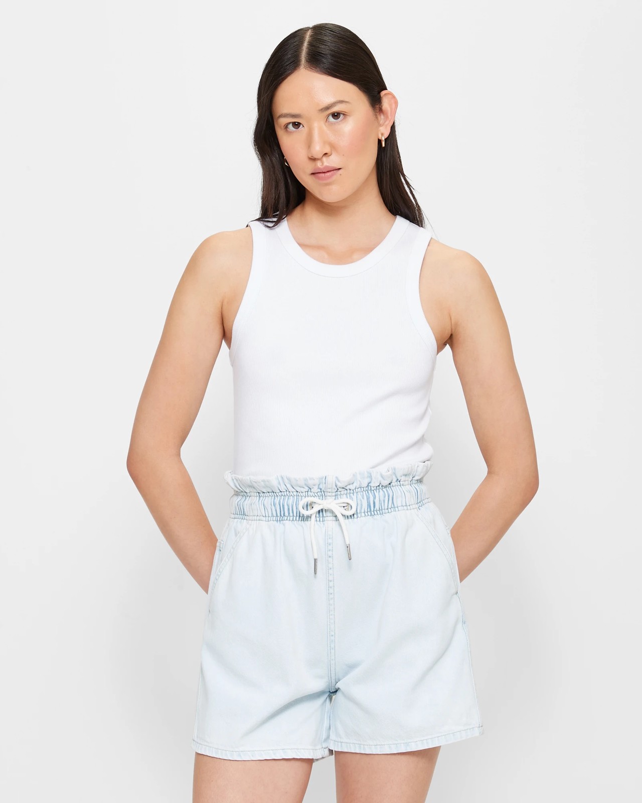 Paperbag denim shorts