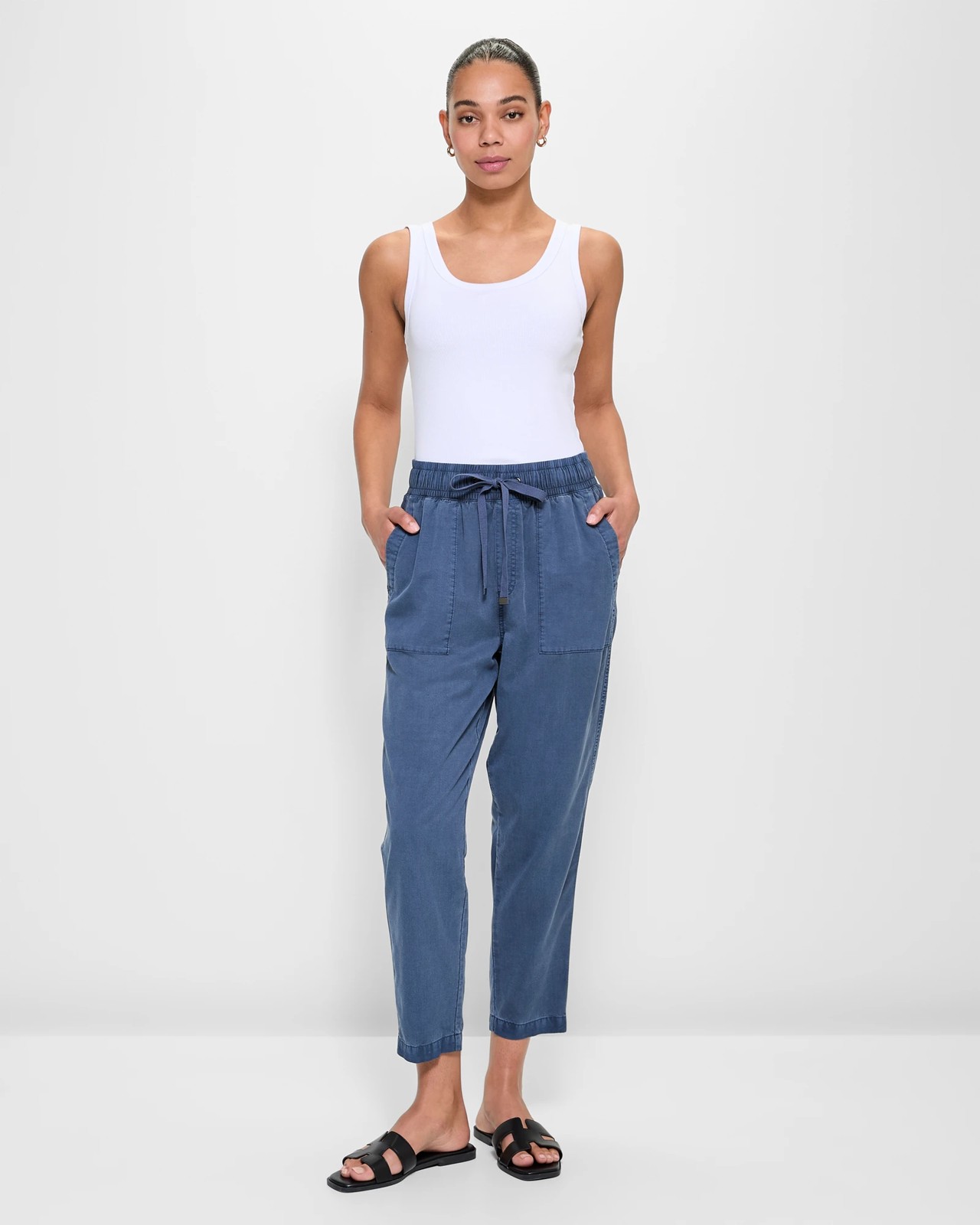Look and feel great in these relaxed slub pants from Target Woman. Crafted from a blend of lyocell, viscose and cotton, these pants are designed for all-day comfort. The regular fit is complemented by a thick elastic waist with a functional drawcord for an adjustable fit. The large front pockets and open back pockets provide plenty of storage for your essentials. The straight leg and relaxed cut will keep you comfortable throughout the day while the ankle length and straight hemline give you an effortless look.