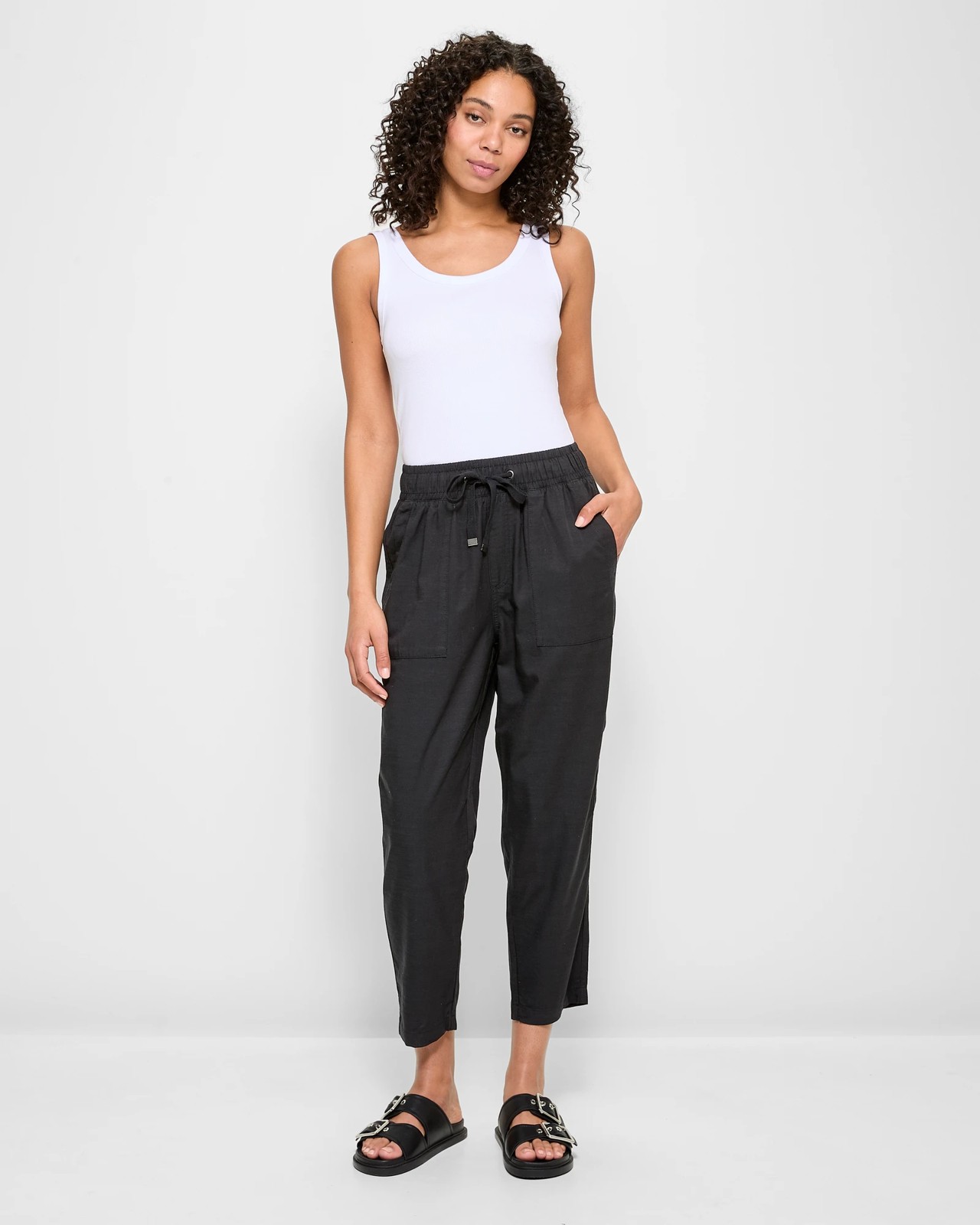 Look and feel great in these relaxed slub pants from Target Woman. Crafted from a blend of lyocell, viscose and cotton, these pants are designed for all-day comfort. The regular fit is complimented by a thick elastic waist with a functional drawcord for an adjustable fit. The large front pockets and open back pockets provide plenty of storage for your essentials. The straight leg and relaxed cut will keep you comfortable throughout the day while the ankle length and straight hemline give you an effortless look.