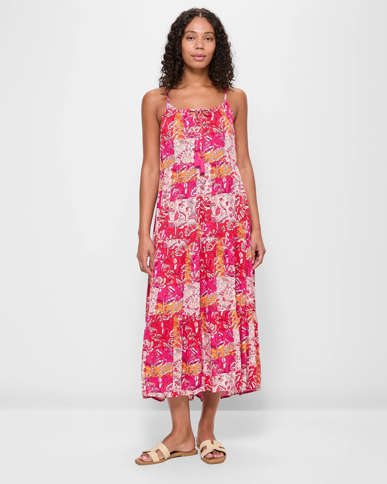Experience effortless style with our Crinkle Swim Maxi Dress, perfect for a sunny day at the beach. The viscose material and all-over crinkle texture offer a comfortable and flattering fit. Slip it on easily and enjoy the scoop neckline with a playful tie and keyhole detail. The dress features sleeveless design and adjustable thin straps for added comfort. A supportive underbust and panel design from bust to hem ensure a graceful look. With practical side seam pockets and a maxi length for full coverage, this dress is your ideal holiday companion.