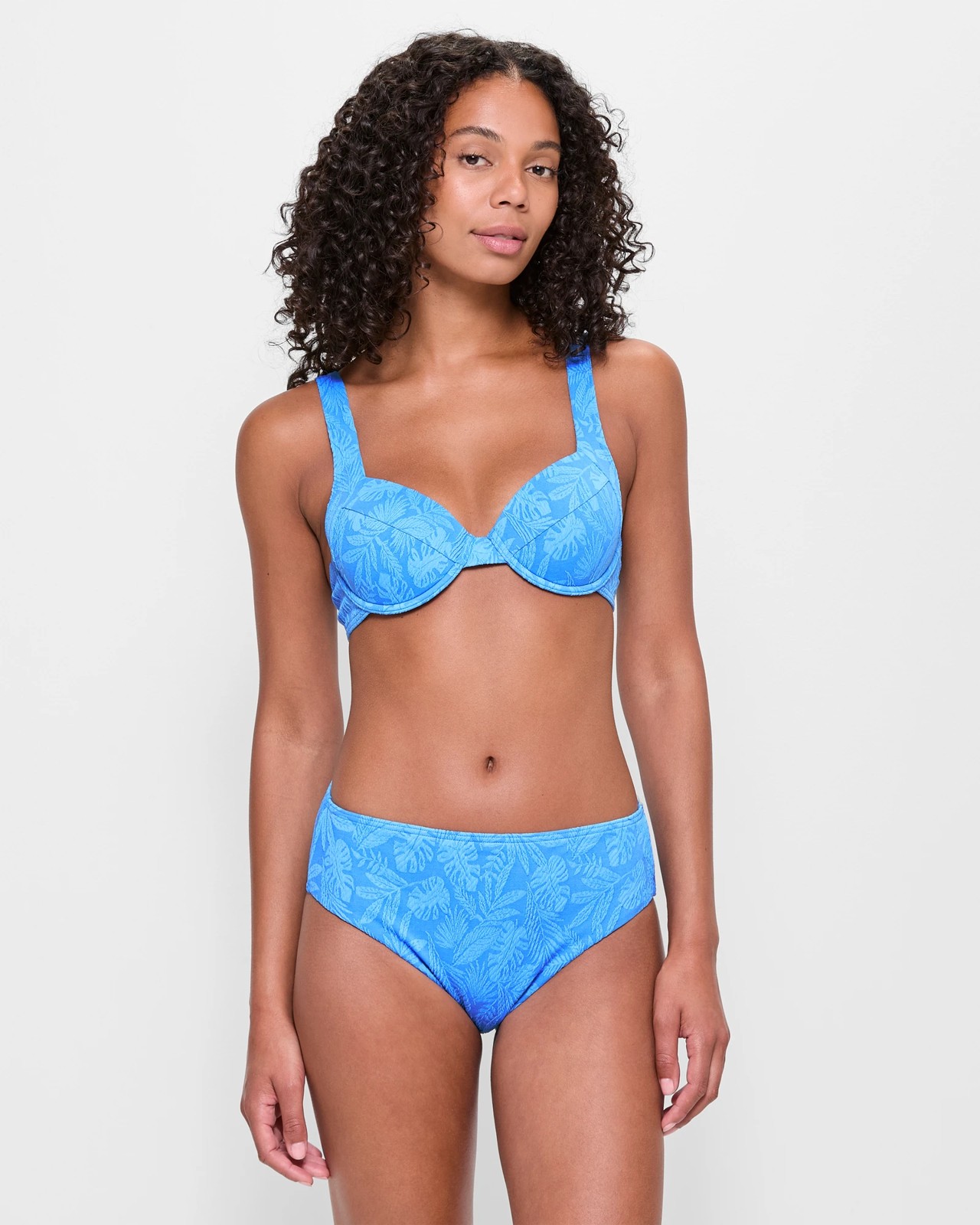 Step into summer with our Resort Jacquard Mid Rise Bikini Swim Bottoms. Using a rich polyester blend, these swim bottoms feature elastane for a flexible fit. Designed with a figure-hugging slim fit, a mid-rise waist, and high-cut legs, they offer full back coverage for ultimate confidence. An intricate jacquard print adds a touch of sophistication, while the thin elastic waistband ensures comfort. Complete the look by pairing these bottoms with the matching bikini top, sold separately. Enjoy beach days with style and grace!
