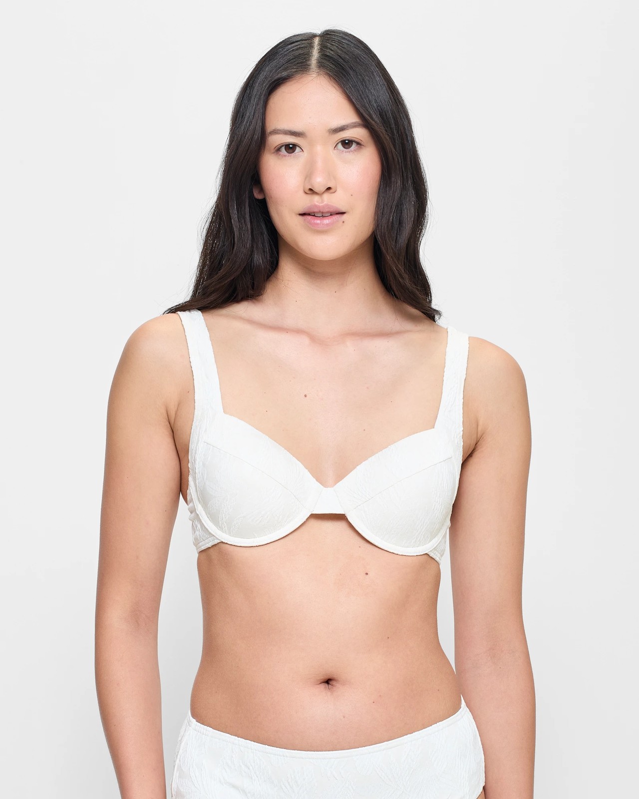 Experience the perfect swimwear with our Resort Jacquard Underwire Bikini Swim Top. Made from a rich polyester blend featuring stretch elastane for added comfort, this swim top ensures you feel great all day. The intricate jacquard pattern adds a touch of class, and the sweetheart neckline paired with padded cups enhances your natural shape. You can adjust the thick shoulder straps for a personalised fit, while the secure back s-clip closure keeps everything in place. Complete the look by pairing it with the matching bottoms available separately. Get ready to turn heads and feel amazing on your next beach outing!