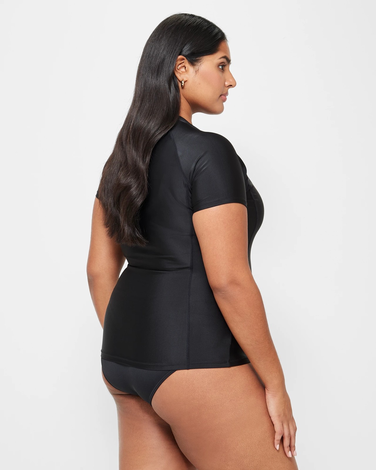 Immerse yourself in luxury with our Resort Short Sleeve Rash Vest. Expertly constructed from a blend of polyester and recycled materials, providing optimum stretch and comfort. Featuring LYCRA Xtra LIFE fibre, ensuring a long-lasting and perfect fit wear after wear. The slim-fit design in elegant black enhances your look, complemented by a round neckline and practical zip front. Short sleeves and side panelling offer unrestricted movement, while the straight hemline adds a stylish finish. Elevate your beach attire with quality and style.