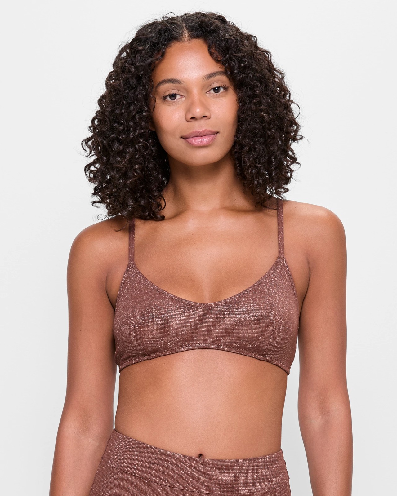 Elevate your beach style with the Resort Sparkle Crop Bikini Swim Top. This women's swim top, made from high-quality nylon-rich fabric, features a comfortable stretch elastic fit. Enjoy the elegance of metallic sparkle threads throughout, coupled with a slim fit crop design and a scoop neckline. The thin adjustable shoulder straps and removable padded cups allow for a tailored fit, while the inner lining ensures comfort. The back s-clip closure adds a secure finish. Complete the look by pairing it with matching bottoms, available separately, for a chic swim ensemble that shines with every move.