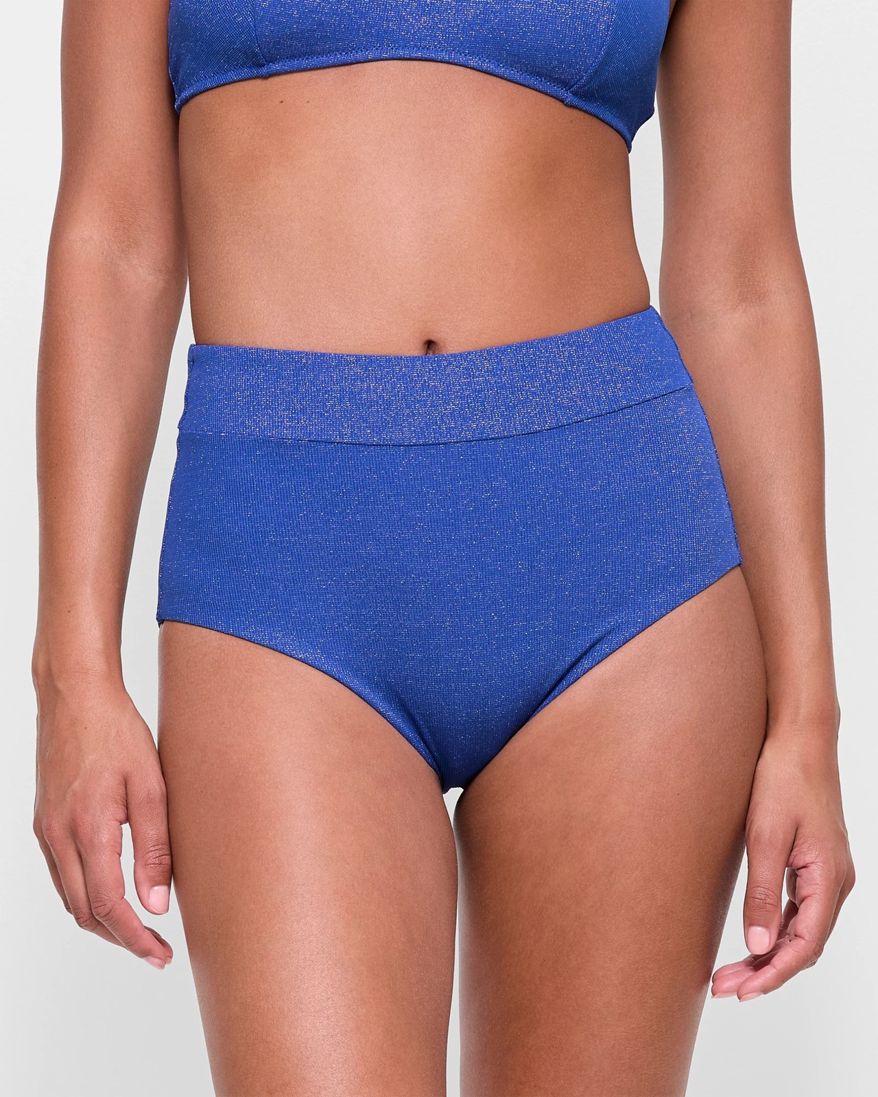Discover our Resort Sparkle High Waisted Bikini Swim Bottoms that will make you shine on the beach. These women's swim bottoms are made from a nylon-rich fabric, boasting stretchy elastane for incredible comfort. The embedded metallic thread adds a touch of glimmer. With LYCRA® Xtra Life™ fibres included, these bottoms ensure durability. Designed with a high waistband and a hidden elastic, they promise a secure and stylish fit. The high cut leg and full back coverage enhance the modern design. Complete your look with the matching crop top, sold separately, and enjoy your beach day with confidence.